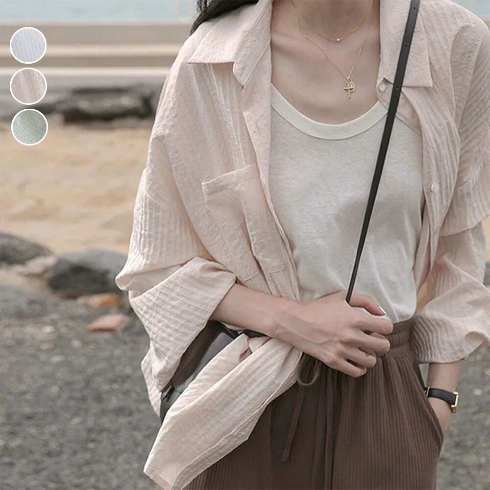 大人カジュアル韓国 ゆったり軽い前開き 長袖シャツUV対策