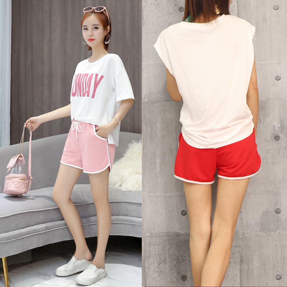 レディース ハイウエスト サイドラインカラーパンツ 夏ルームウェア カジュアルホットパンツ スウェットパンツフィットネス