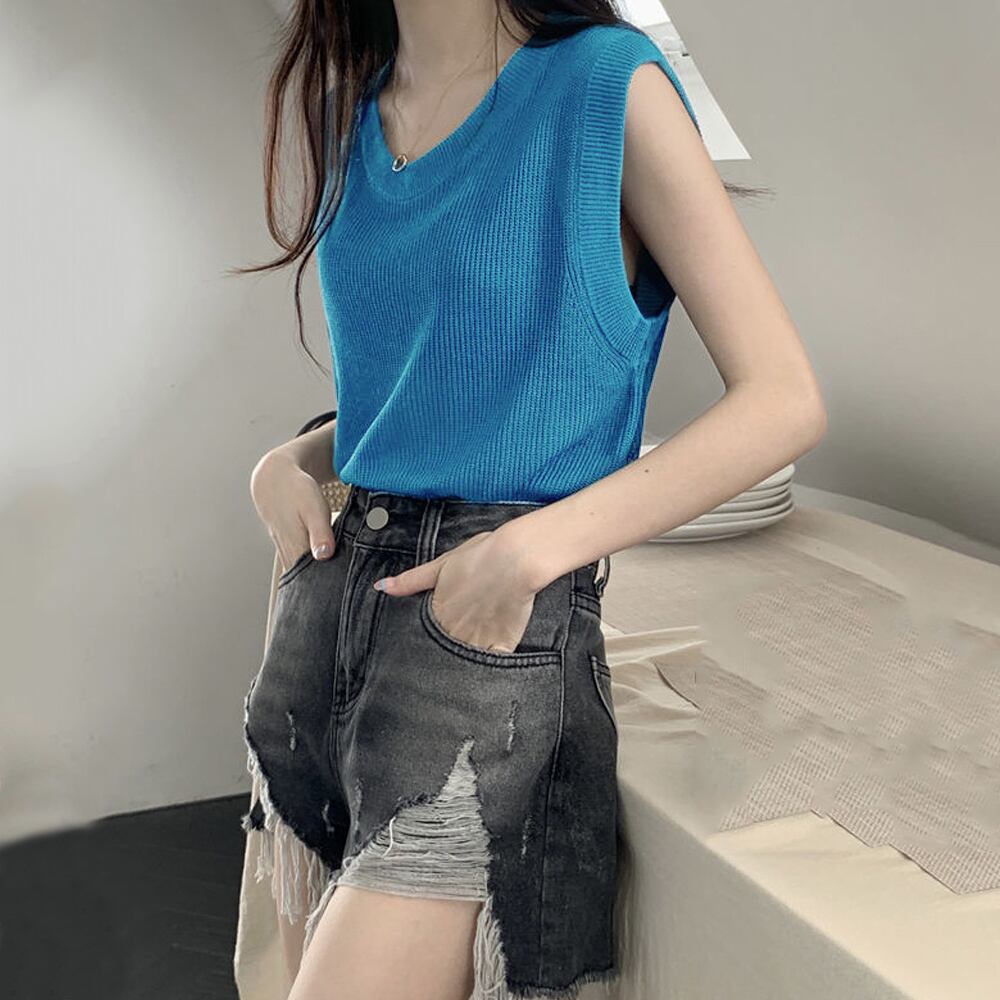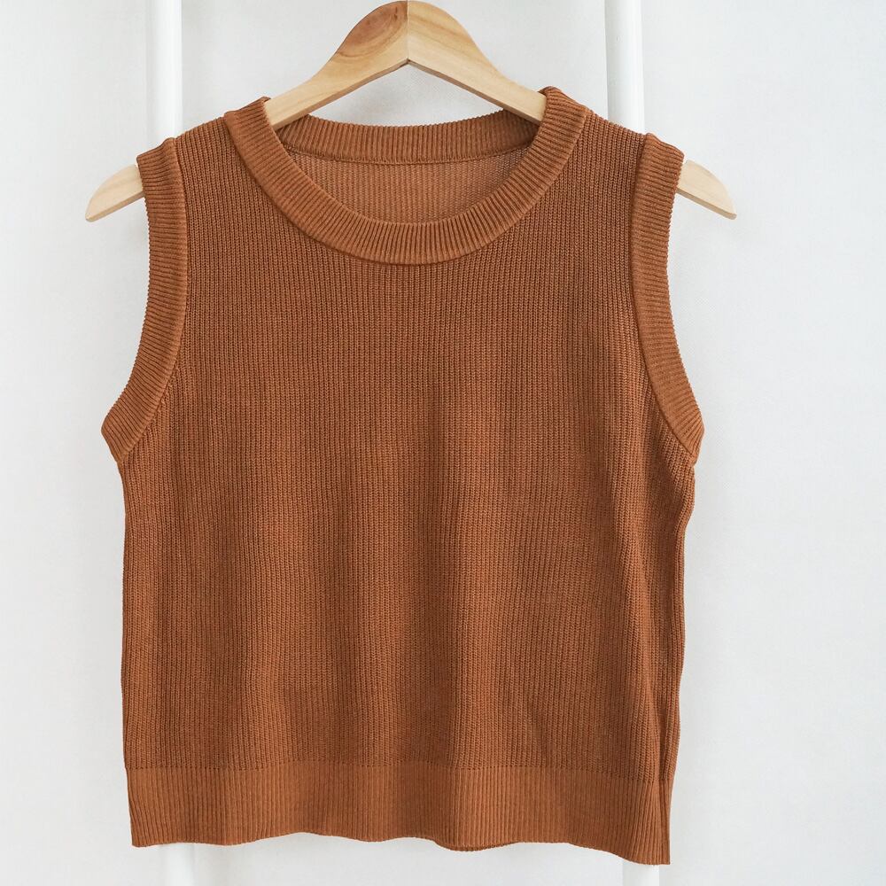 リブニット ノースリーブ ニットソー 通勤通学 重ね着 ラウンドネック 着回しオールシーズン プルオーバー 韓国風