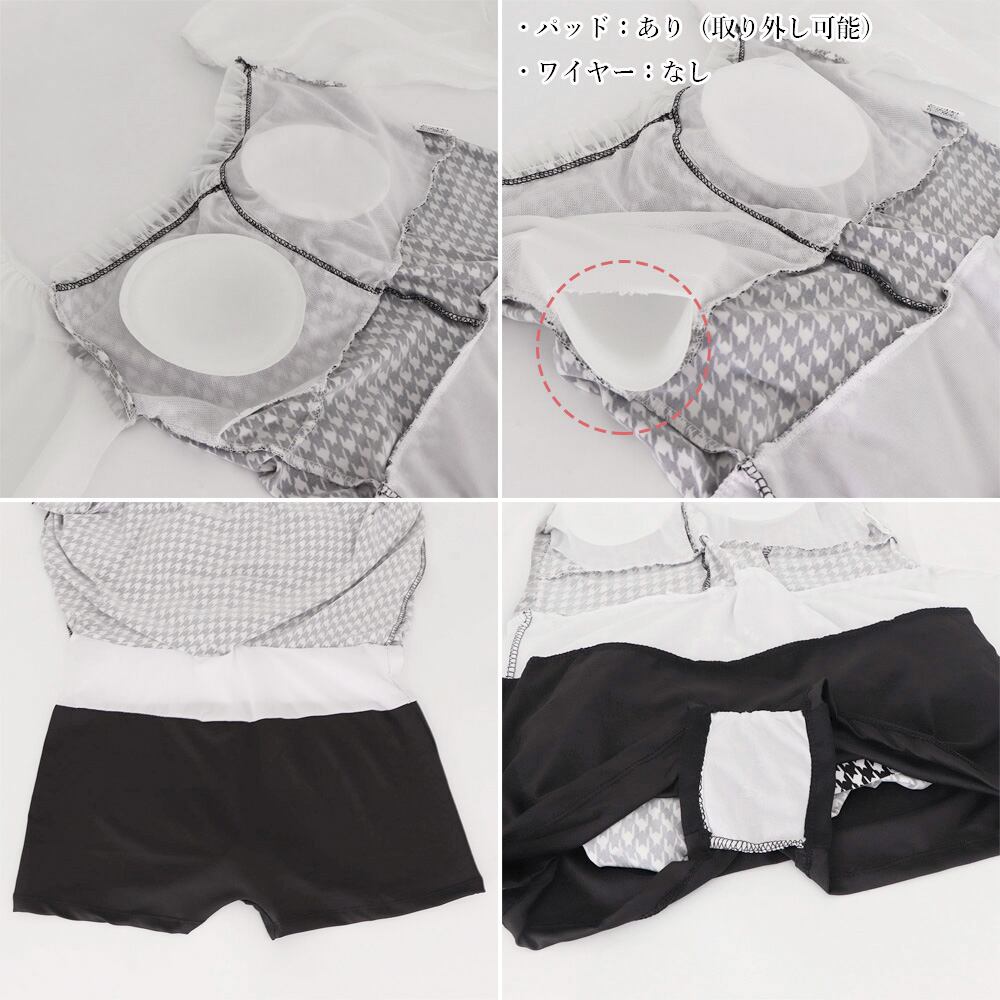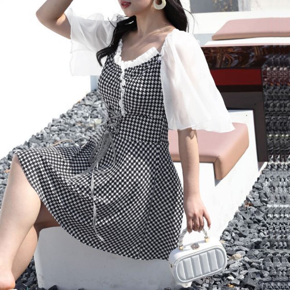 お洒落に体型カバーできる千鳥柄デザインのぽっちゃりワンピース水着