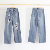 ワイドデニムレトロ ストレート デニム デニムボトムス韓国
