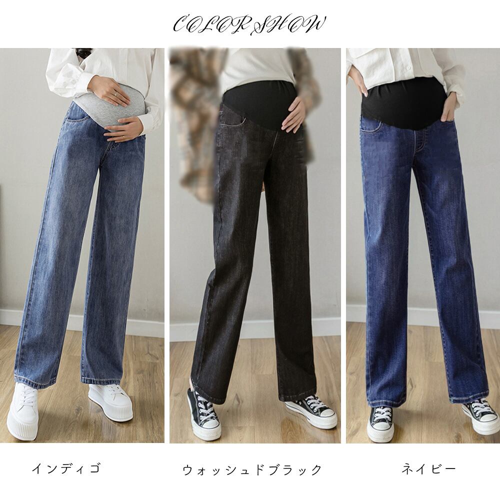マタニティウェア 産前産後 お腹楽ちん ジーンズ ウエスト調節デニムパンツ お腹カバー ストレートパンツ アジャスター付