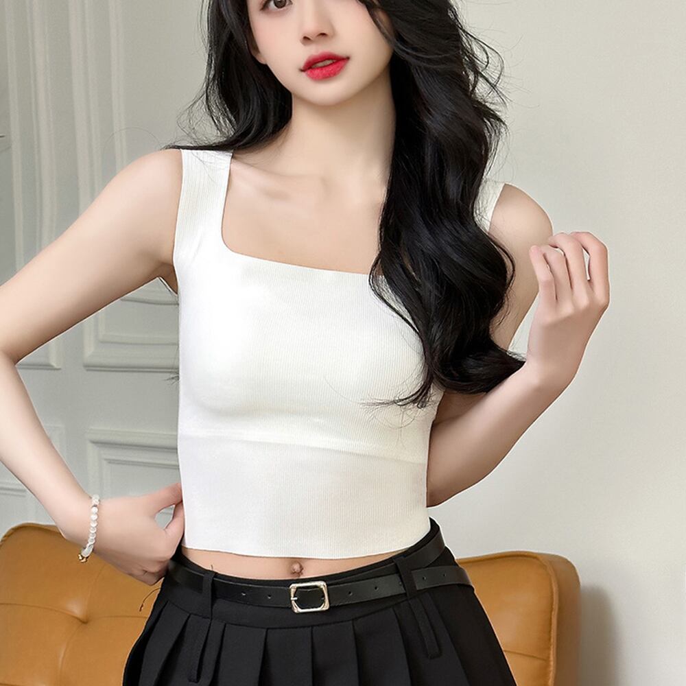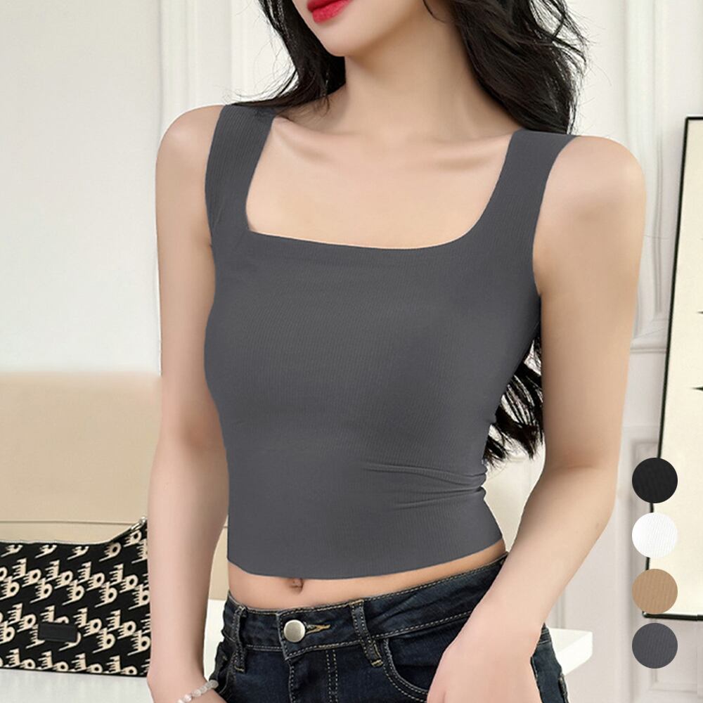 夏の暑い時期でも一枚で快適に着用できる、カップ付きタンクトップ