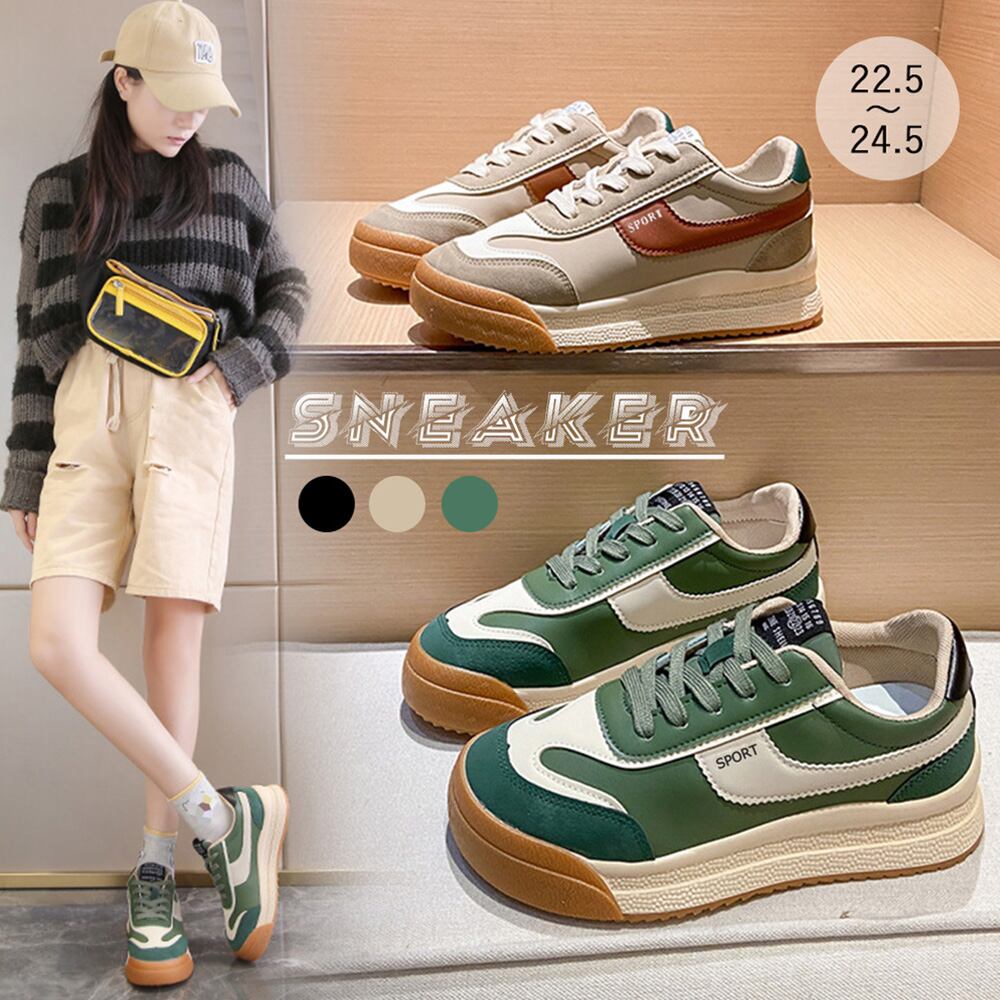 おしゃれ ローヒール スニーカー ローカット カジュアル シューズ 履きやすい レースアップ 靴 春夏 バイカラー 靴