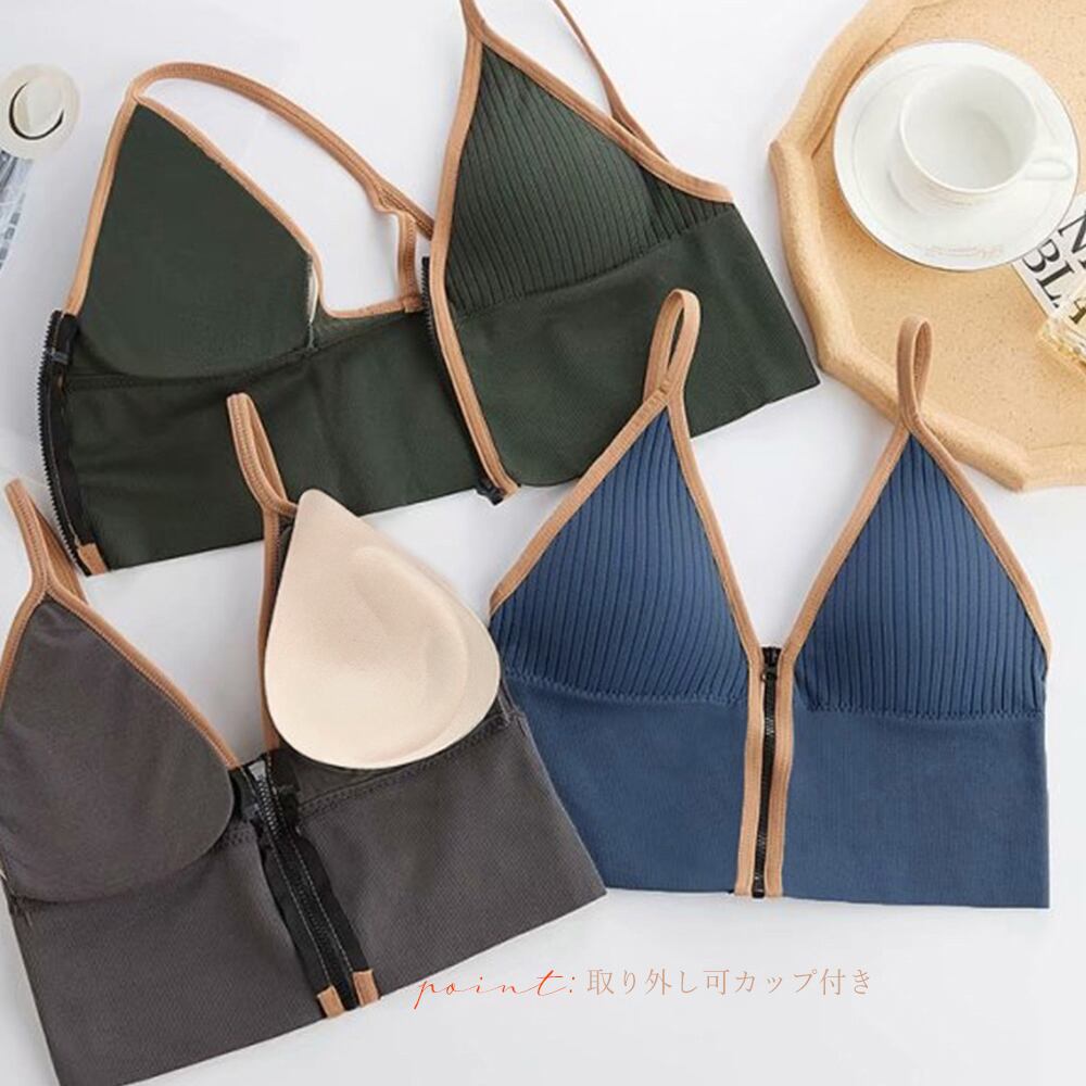 フロントにファスナーのデザインで着脱らくちんなカップ付きキャミソール