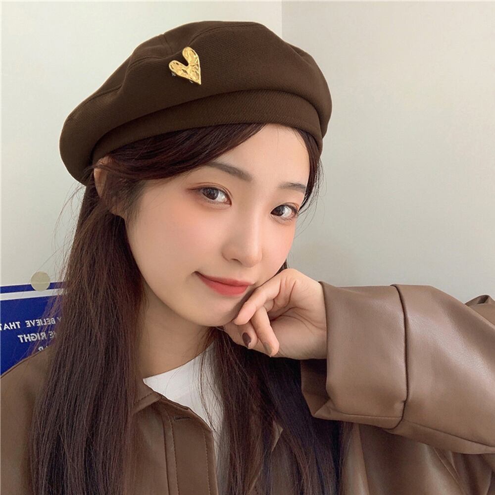 レトロ 韓国ファッション 飾り ハートデザイン おしゃれ ハット カジュアル シンプル 大人 トレンド感 可愛い