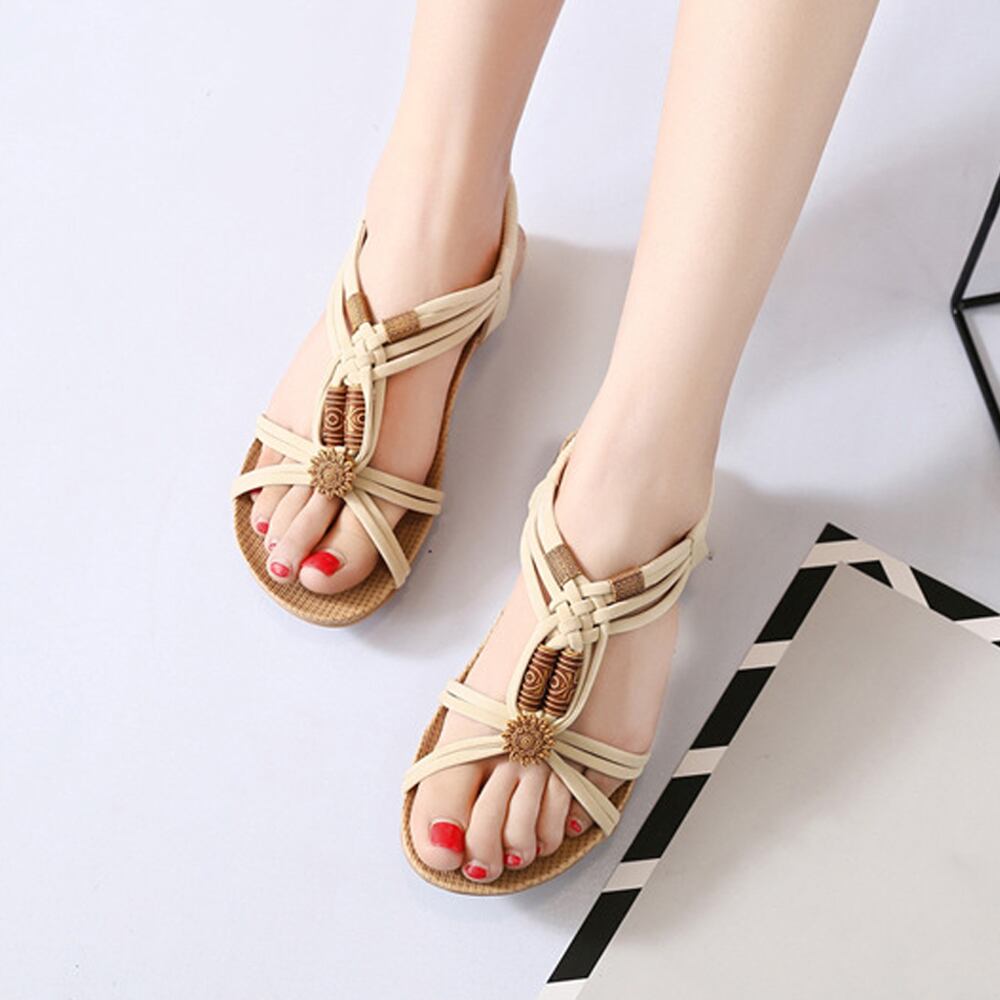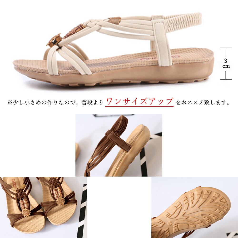 レディース コンフォートサンダル 歩きやすい ぺたんこ ボヘミアン風 靴 ビーチサンダル南国風 疲れにくい