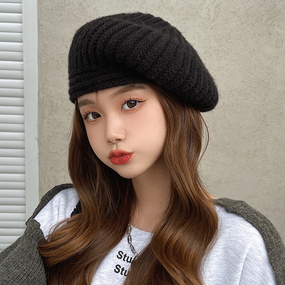 レディース 韓国風 リブニット 秋冬 カジュアル ベレーキャップ 防寒 あったかい ハット帽子 おしゃれ 小顔ニット編み