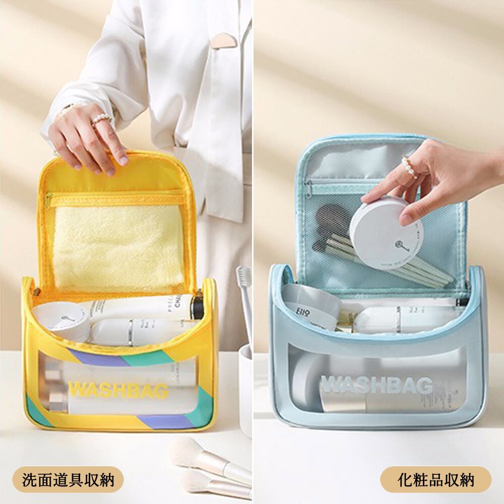 持ち運びに便利。カラフルで前後半透明で爽やかデザインが可愛らしい大容量化粧ポーチです。