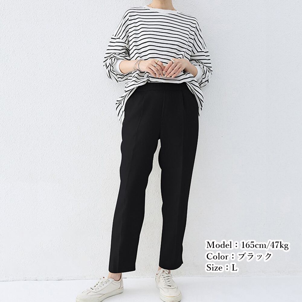 黒パンツ 着やせ オフィスカジュアル ウエストゴム 無地