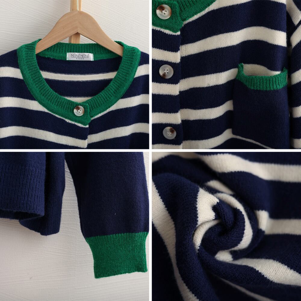 ボーダー柄デザインが爽やかなマリン風を演出、配色ニットカーディガンが新入荷