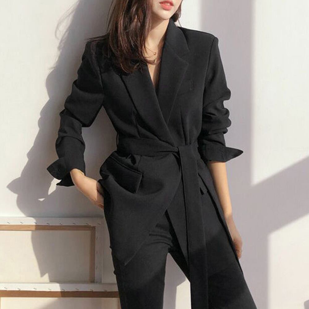 黒スーツ30代通勤 ライトアウター韓国 大人上品長袖着やせ