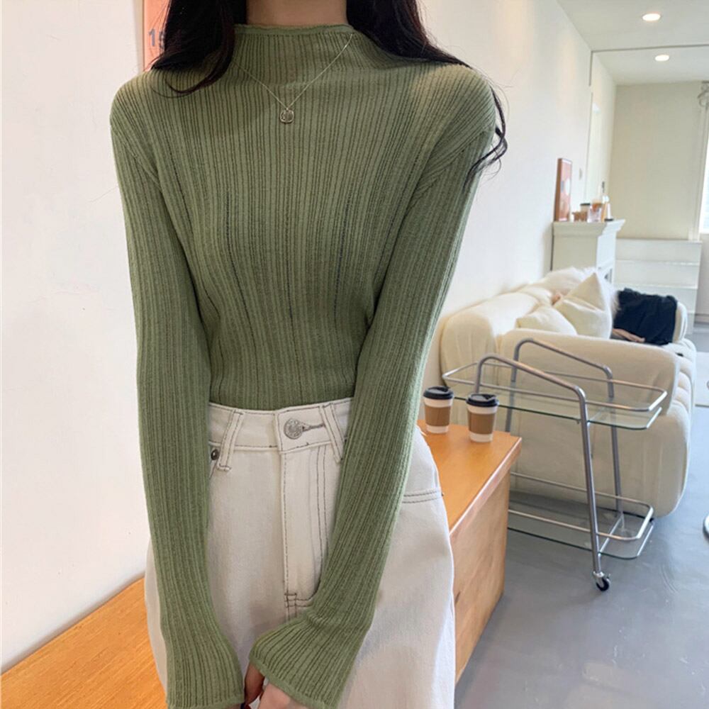 無地 着やせ インナーニットソー ボトルネック きれいめ ニットウェア透け感 春秋冬 オフィスカジュアル