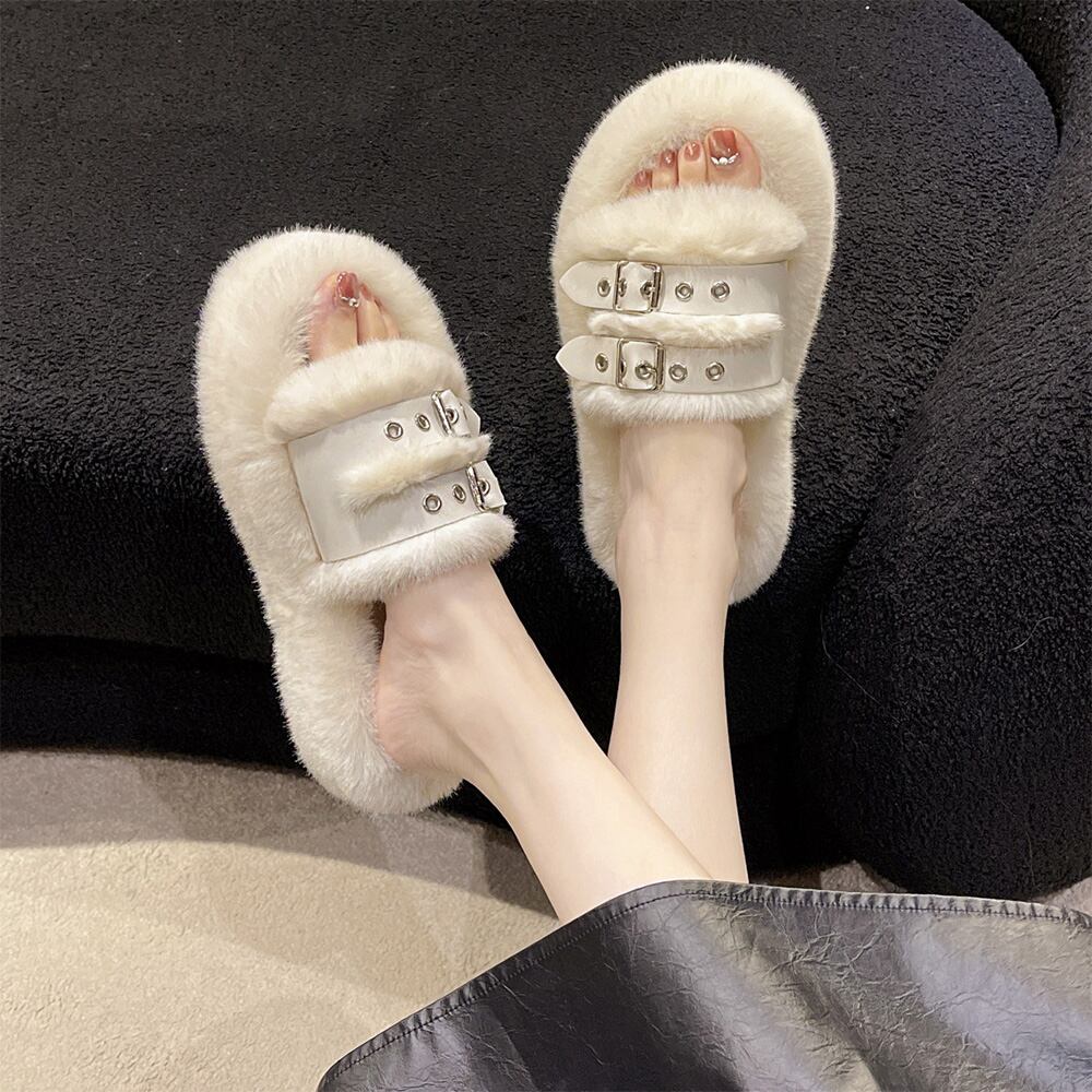 韓国ふわふわ 厚底サンダル ぺたんこ ファースリッパ 歩きやすい おしゃれつっかけ 暖かい もこもこ ルームシューズ秋冬