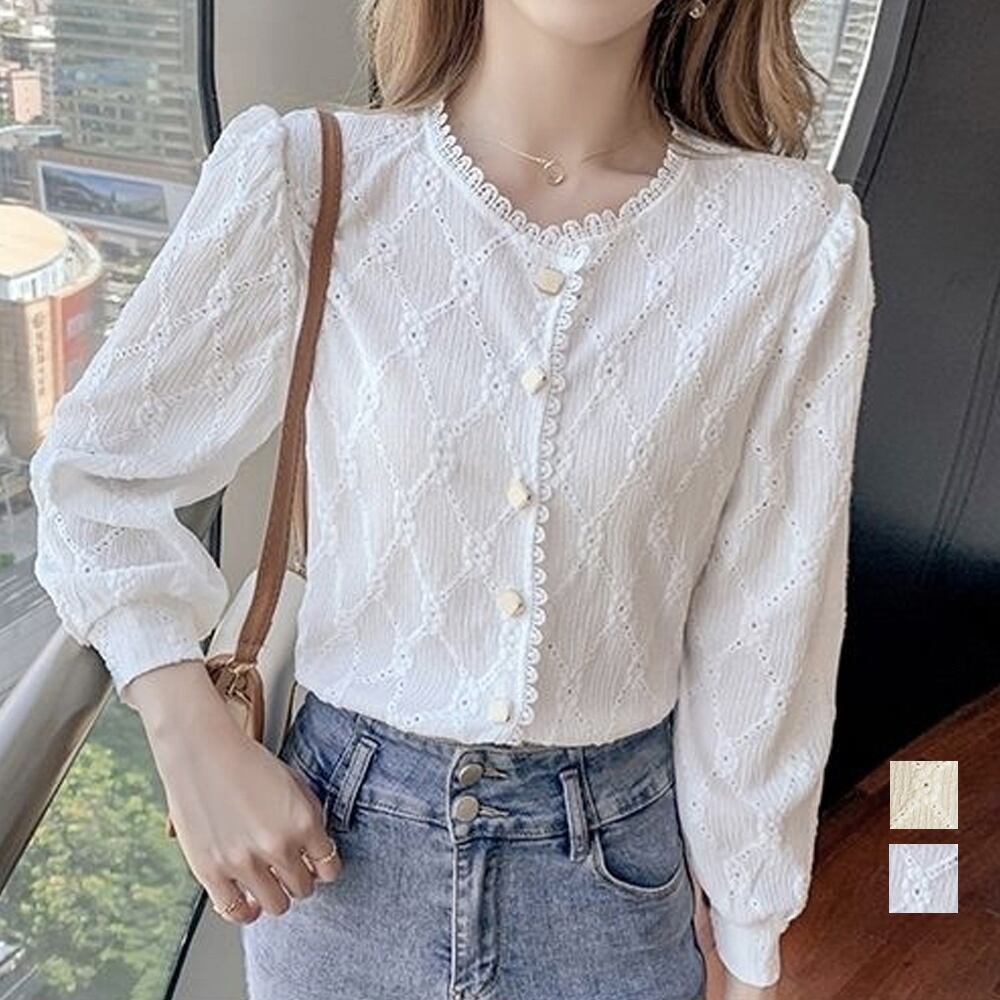 シャツブラウス 大人可愛い 前開き おしゃれ トップス ラウンドネック 着回し ブラウス 白 通勤 フロントボタン