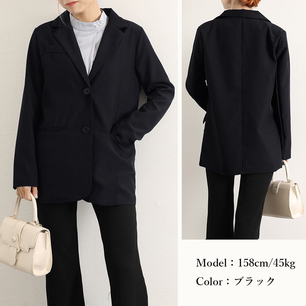 ゆったりとしたシルエットでお腹周りもヒップも隠れて、体型カバーしつつきちんと感と女性らしさを持ち合わせたフォーマルスーツ上着