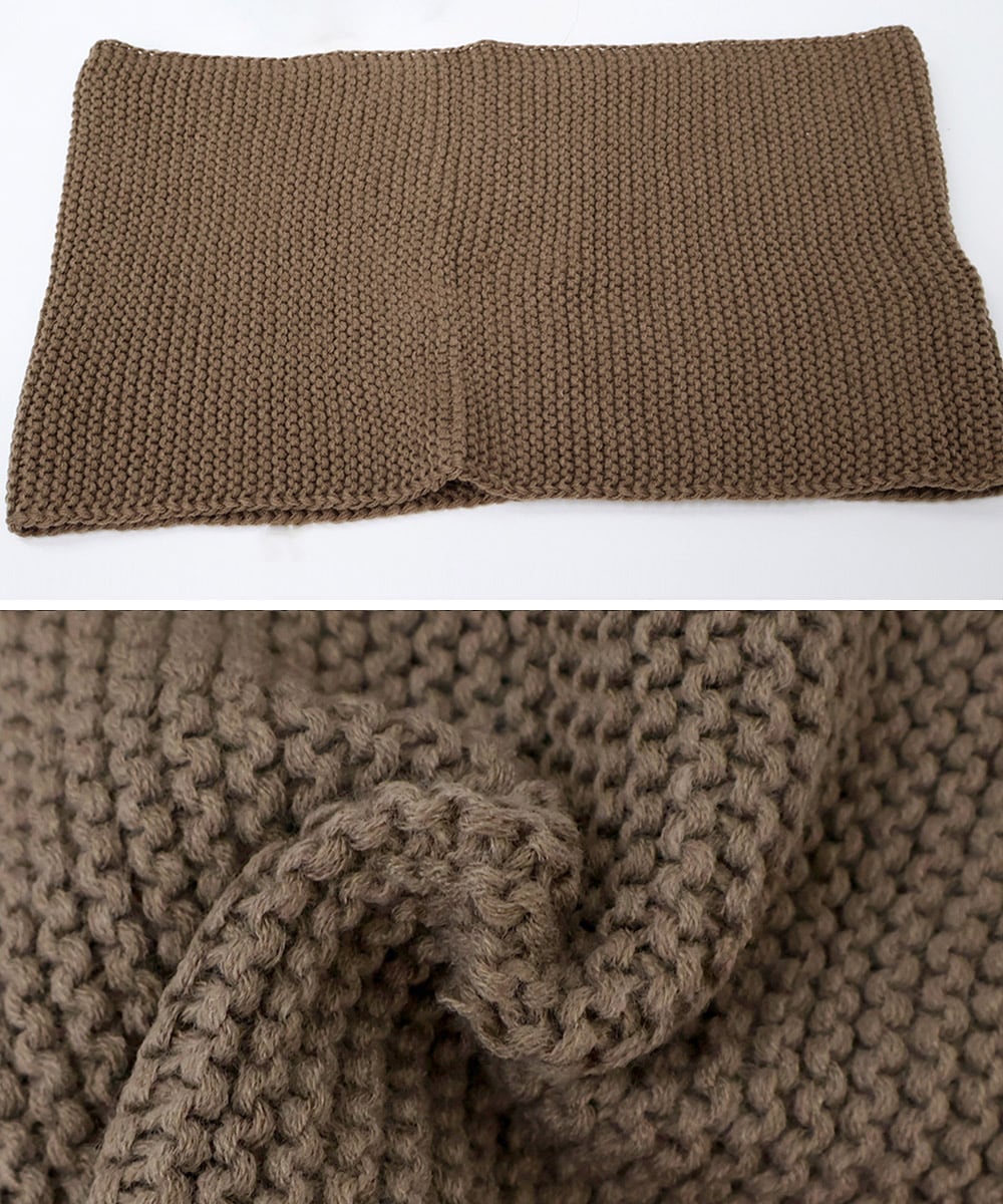伸縮性があり、ふんわりとした柔らかな素材感で肌触りの良い仕上がりニットスヌード
