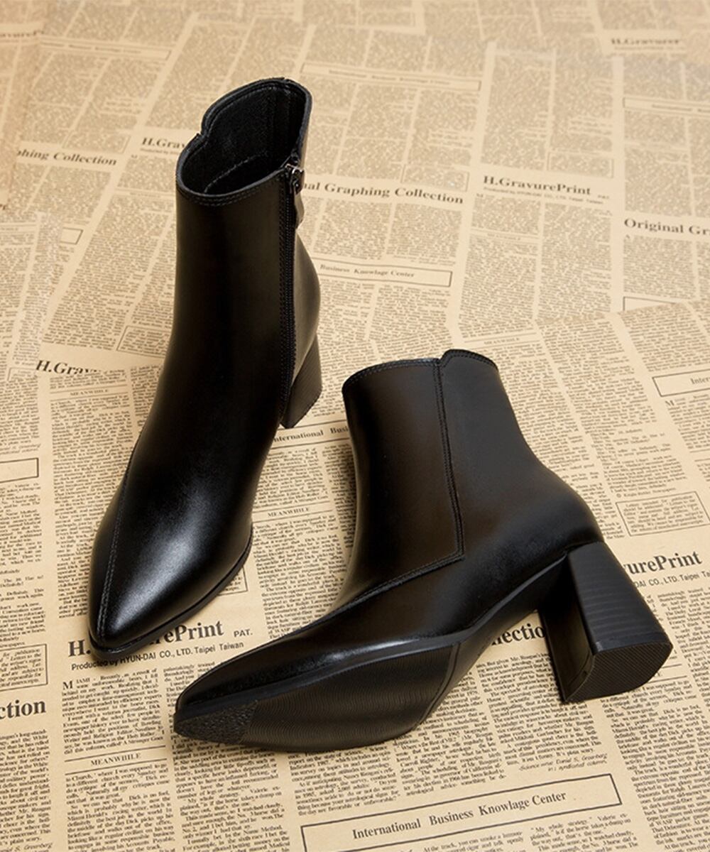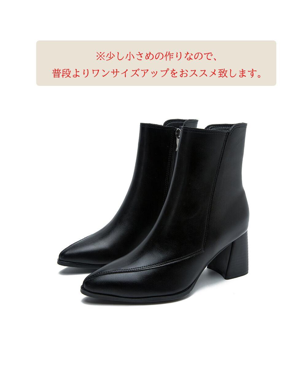 ブーティ ポインテッドトゥ 歩きやすい ショート丈 チャンキーヒール ミドルブーツ シンプル 美脚 おしゃれ 大人 通勤