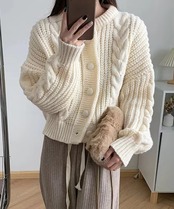 ニットカーディガン ショート丈 厚手秋冬
