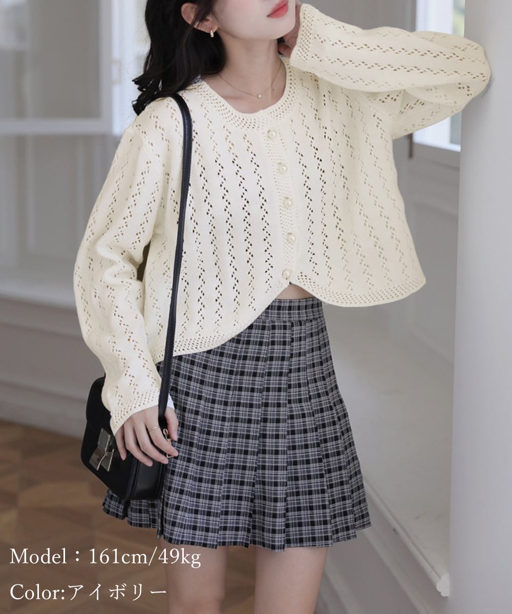 ハイウエストボトムスとの相性が抜群ショート丈ニットカーディガン
