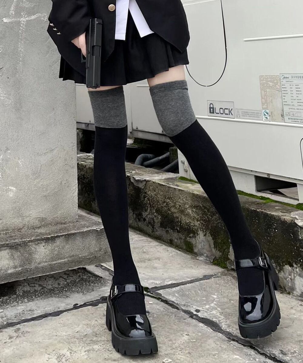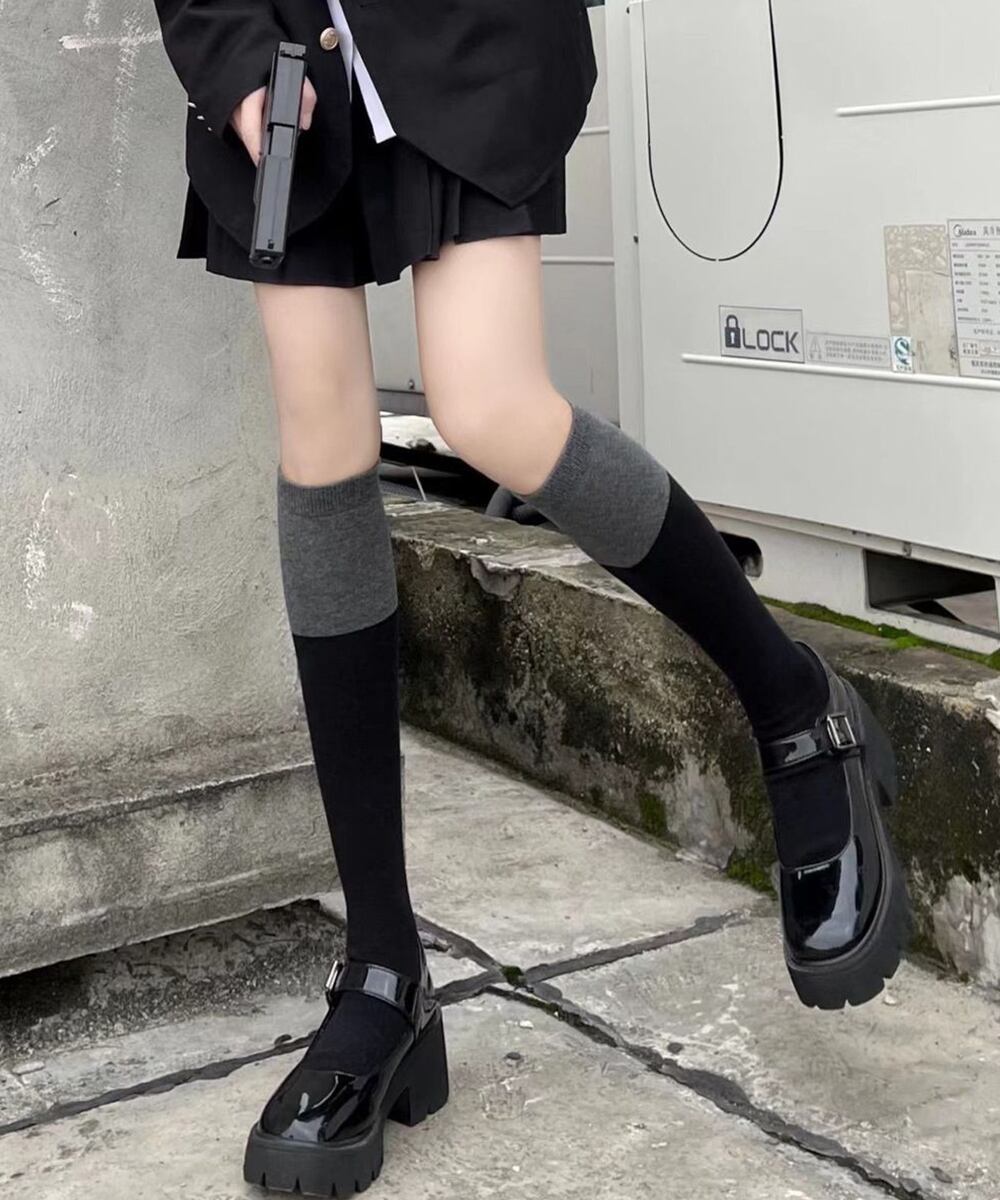 ロング靴下 女性用 スクールソックス 韓国風無地ソックス