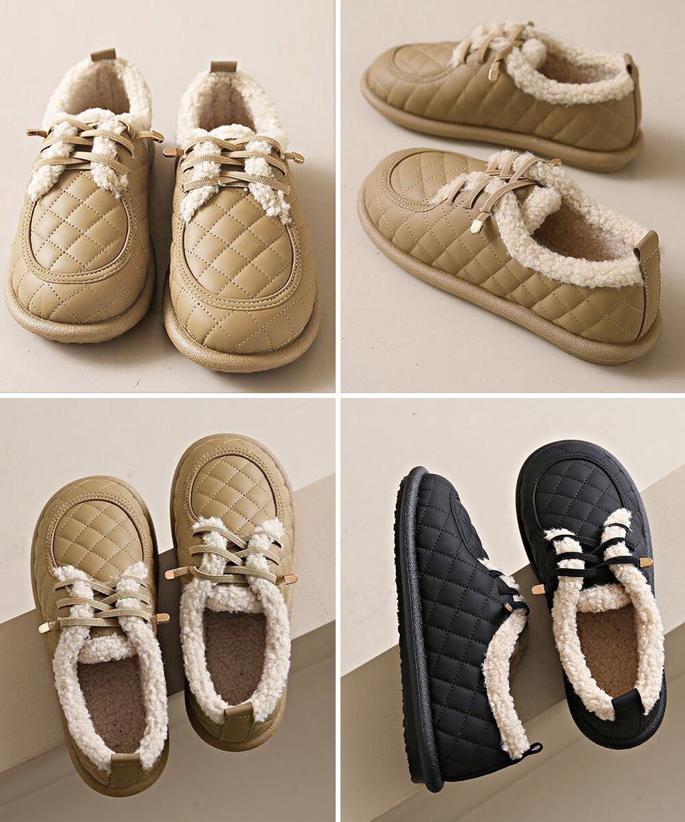 シーズンライクなキルディングDESIGNにふわふわ裏起毛加工、秋冬にはぴったりな見た目がおしゃれで暖かいもこもこモカシン