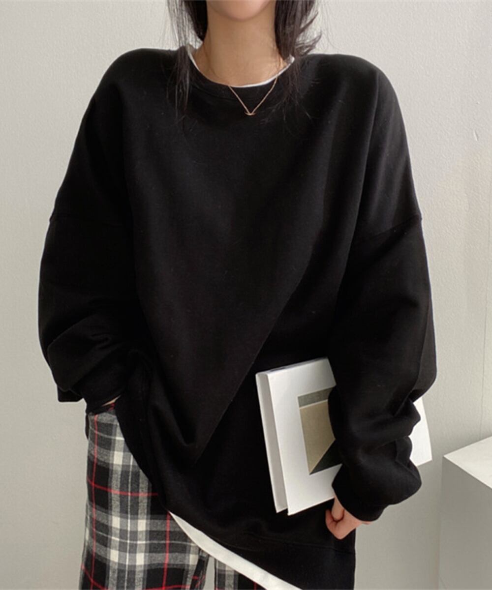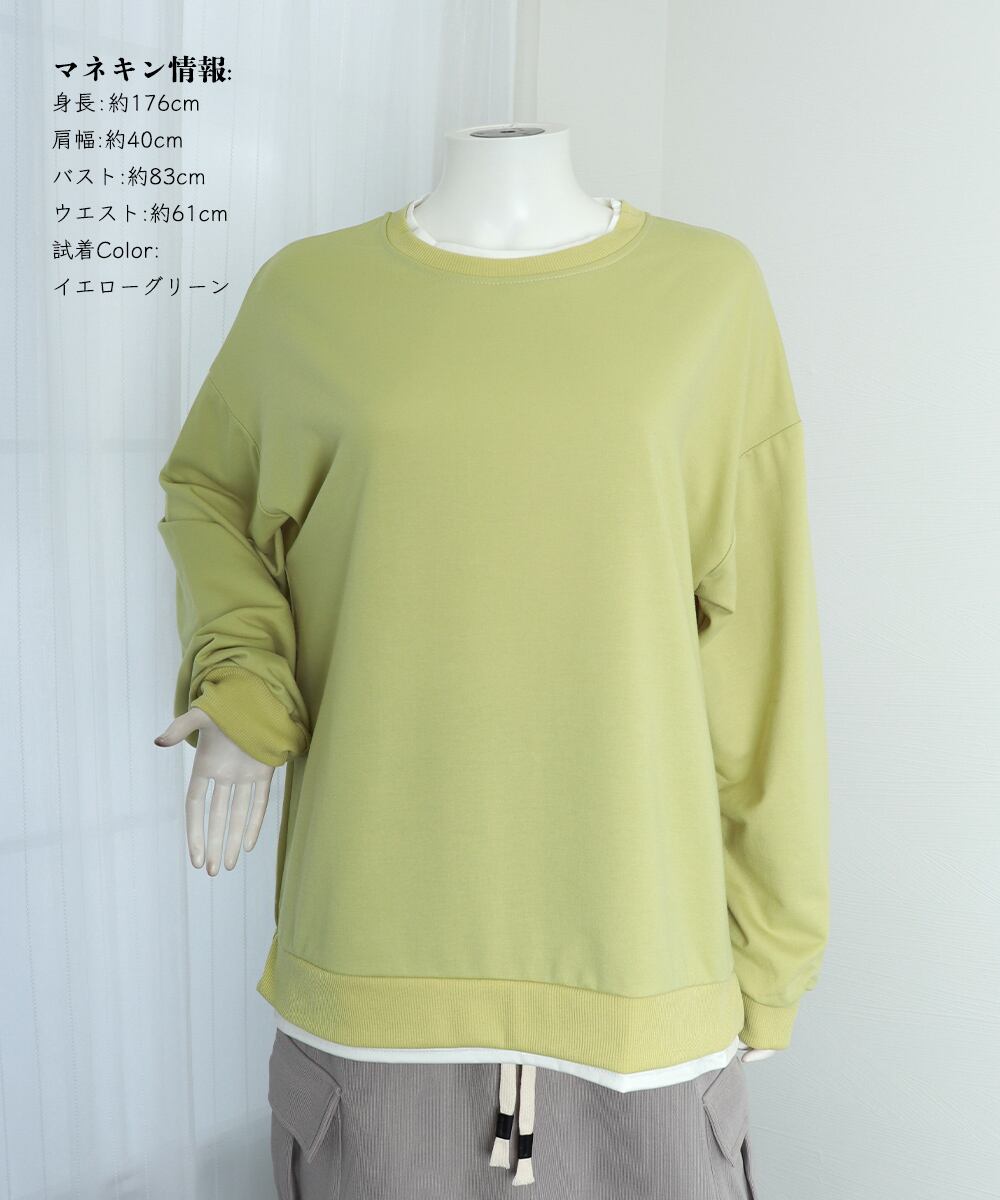 レディース ゆったり 長袖プルオーバー 着やせ 体型カバー ストリート カジュアル オルチャン おしゃれ 重ね着風 無地