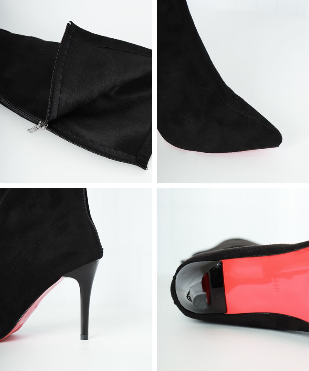 9cmハイヒール 美脚ブーツ 脚長 膝下 スエード調 大人 オルチャン きれいめ シンプル 秋冬 人気 韓国