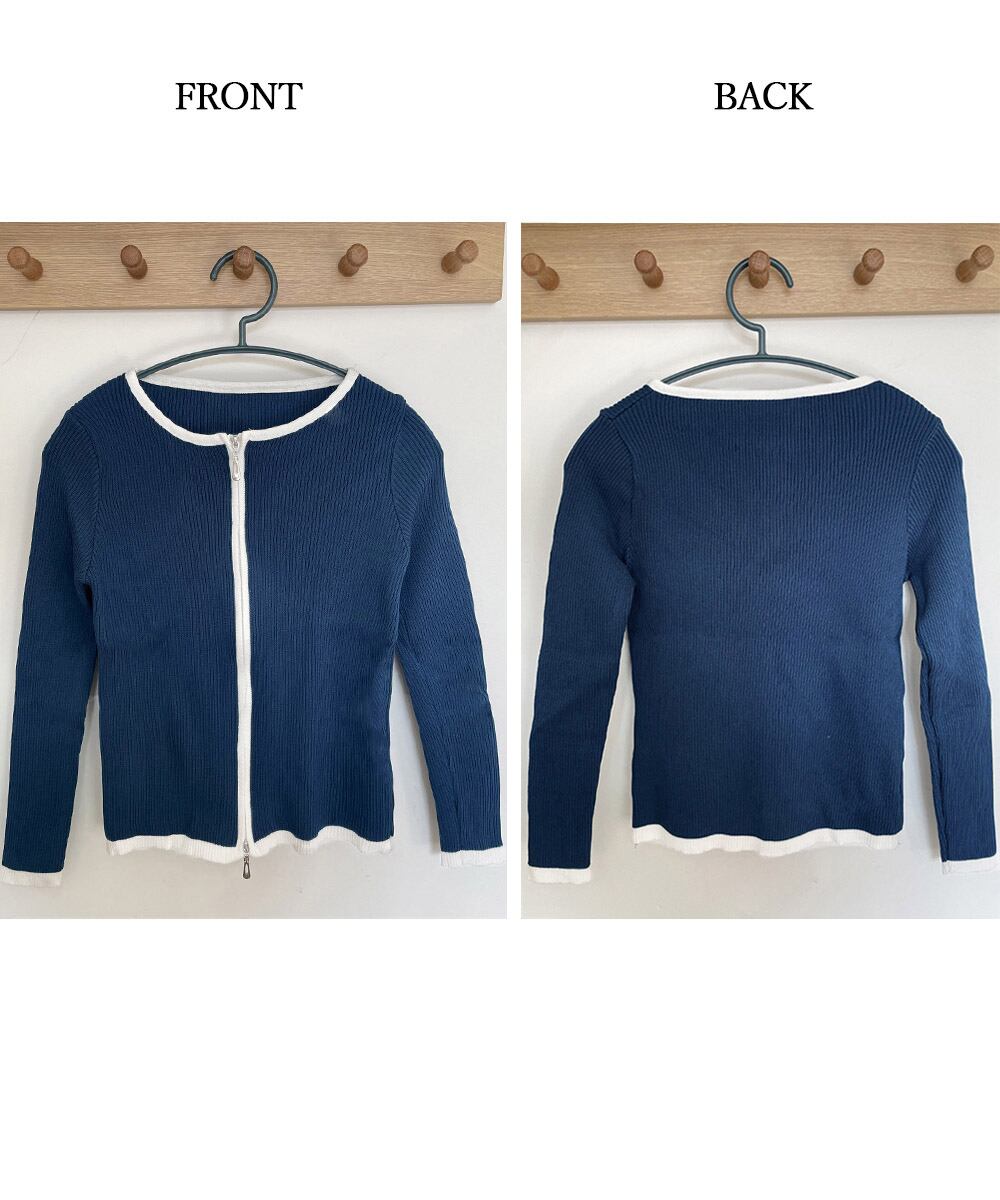 レディース 大人カジュアル フロントジップバイカラー リブニット 長袖 無地 タイトニット 着やせ セクシー