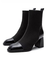 ショートブーツ ショート丈 ミドルヒール 合皮 秋冬 ブラック 大人 オルチャン 疲れない おしゃれ 歩きやすい