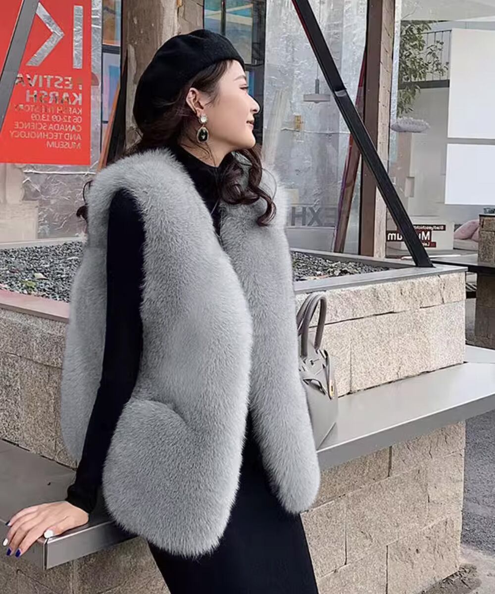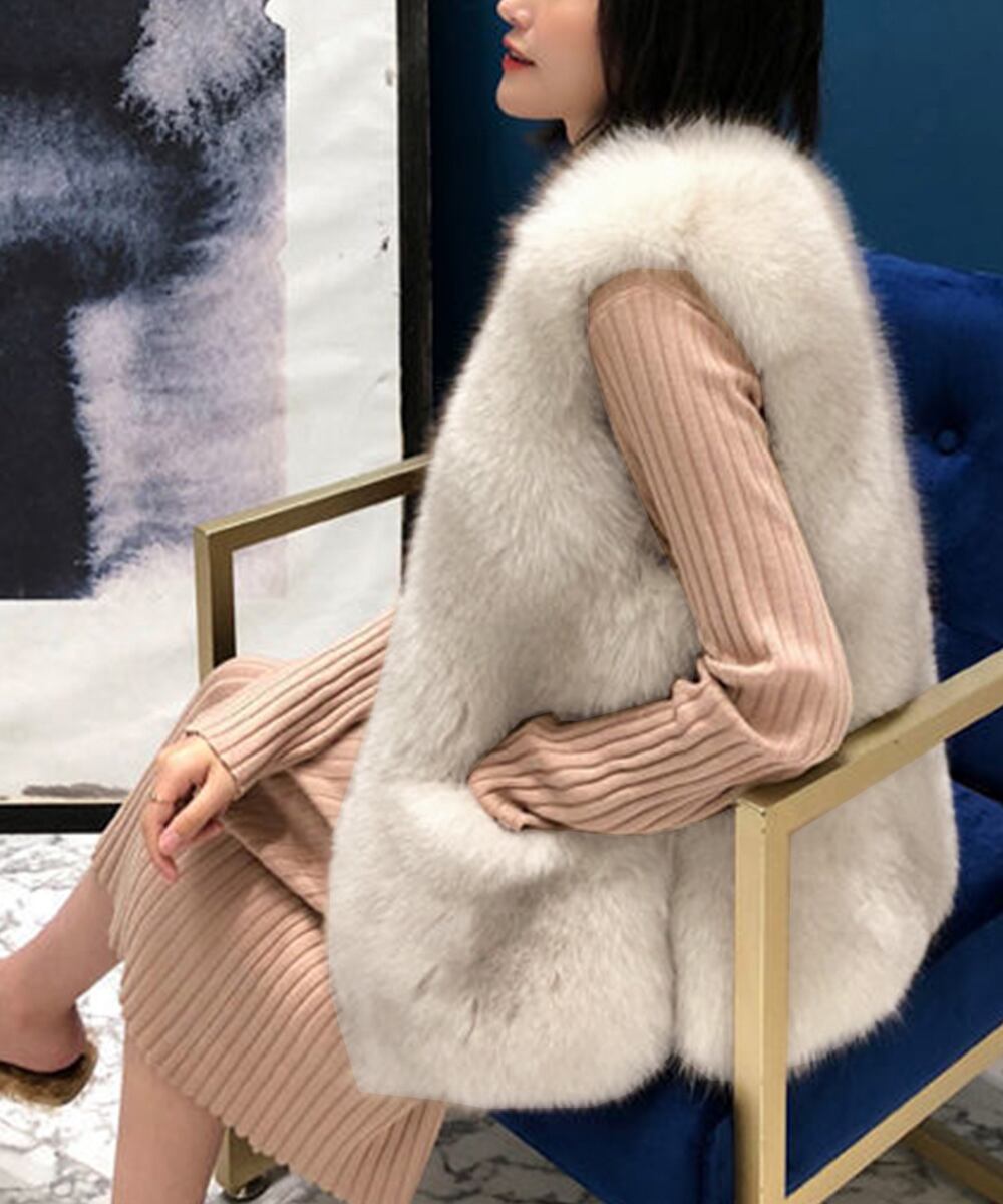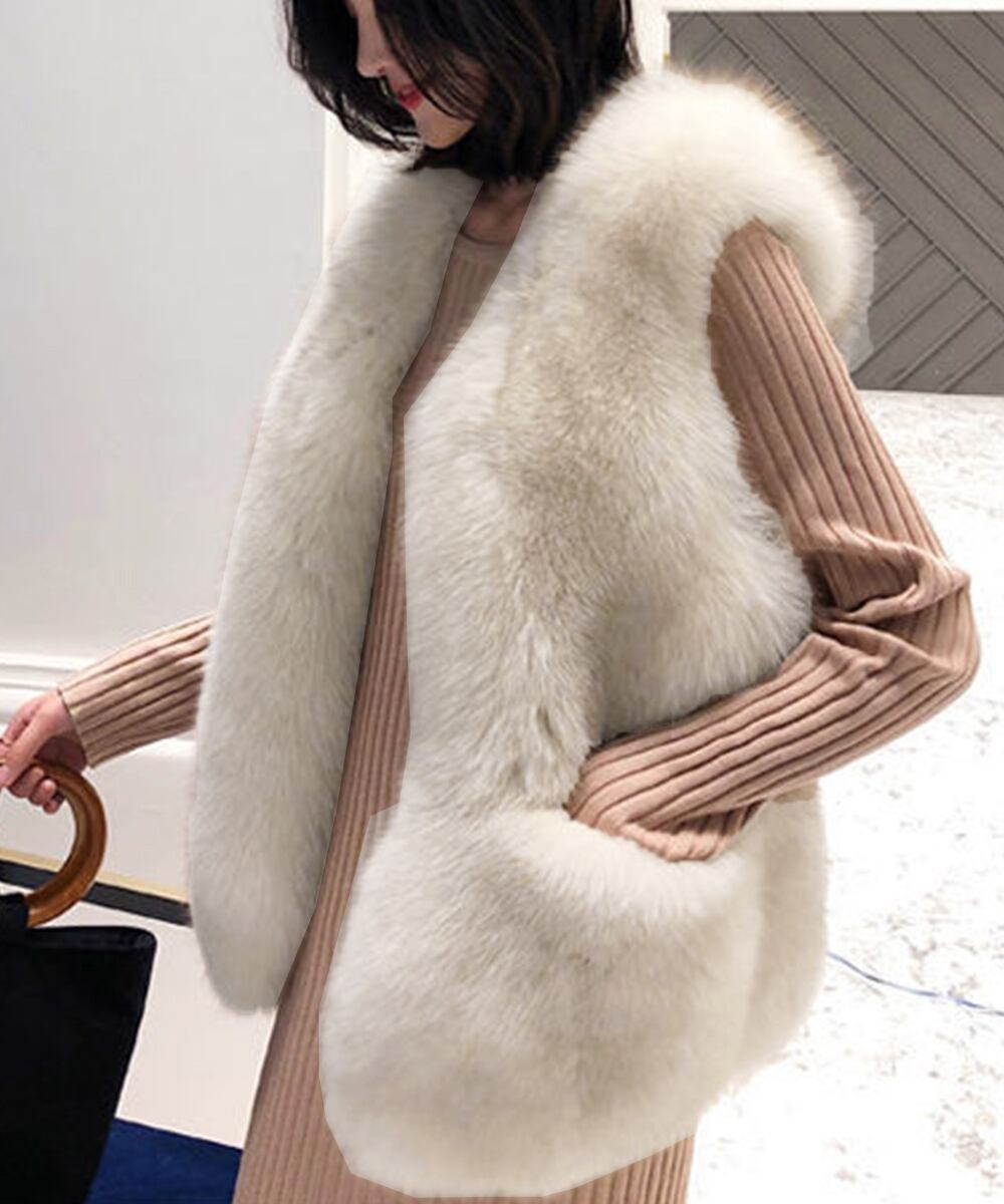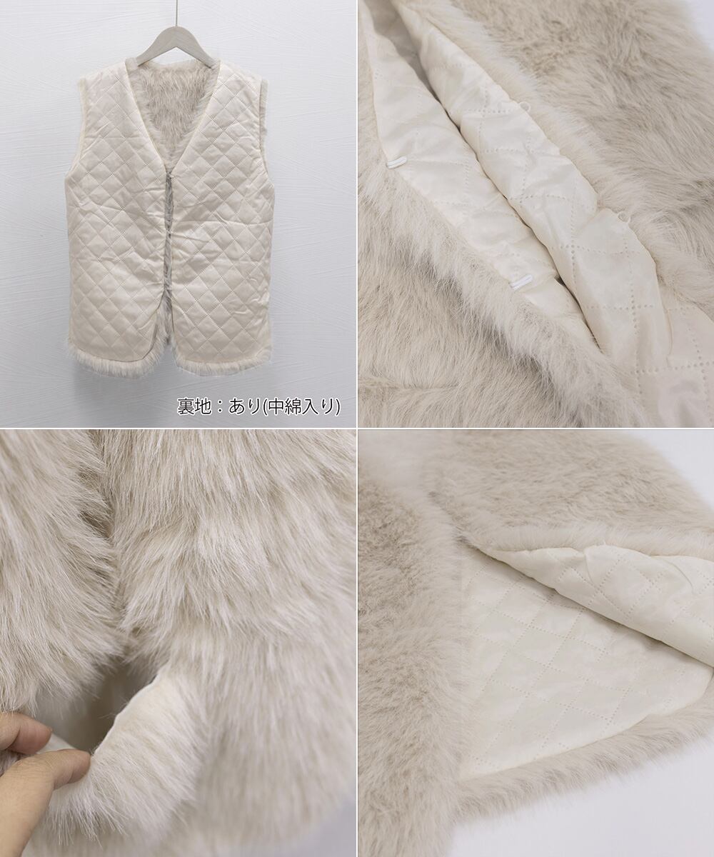 レディース ふわふわ フェイクファーコート ノースリーブ ファージャケット おしゃれ 秋冬アウター 暖かい中綿 裏地付き