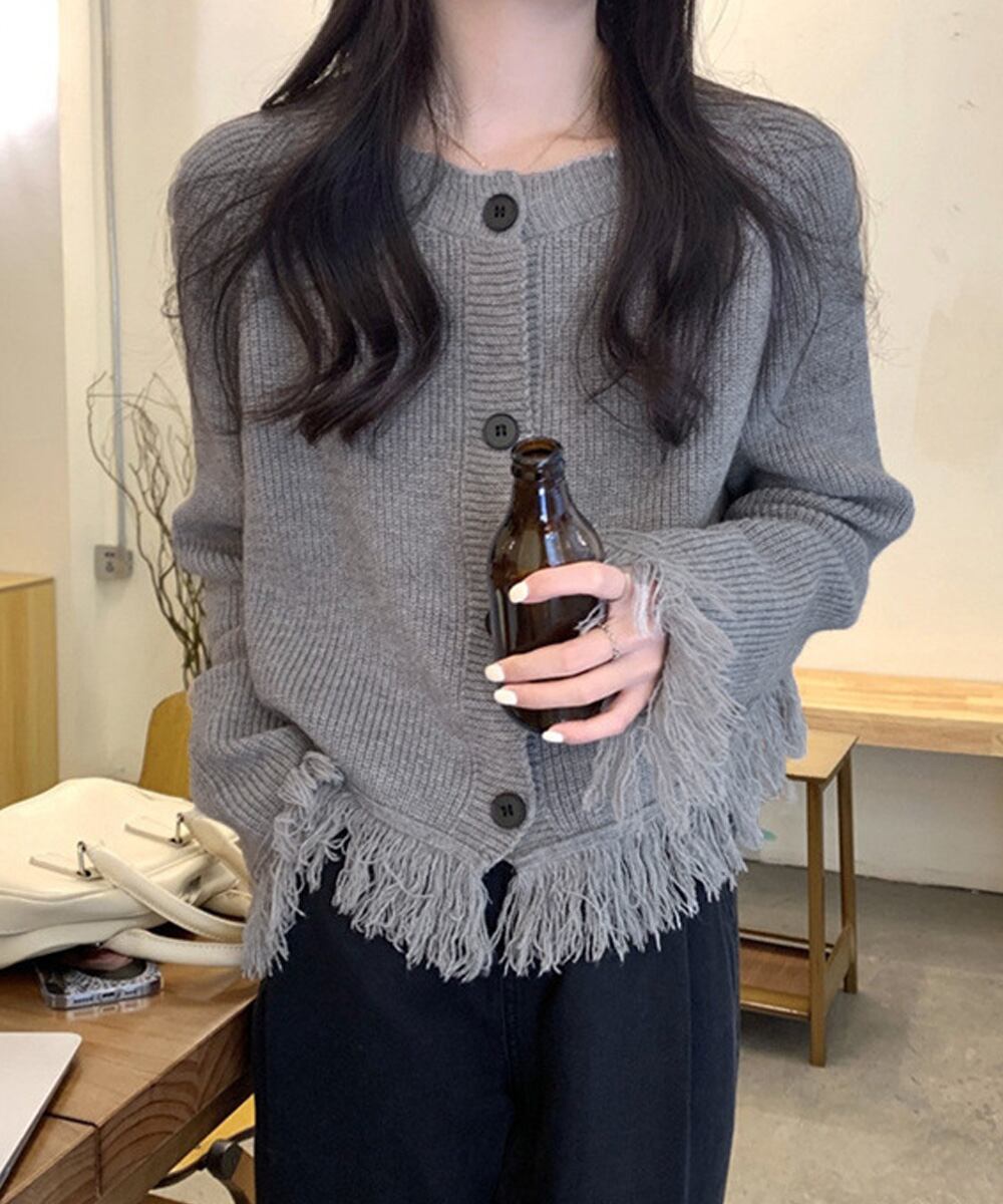 ニットアウター長袖 前開きニット 韓国 着やせカーデ無地
