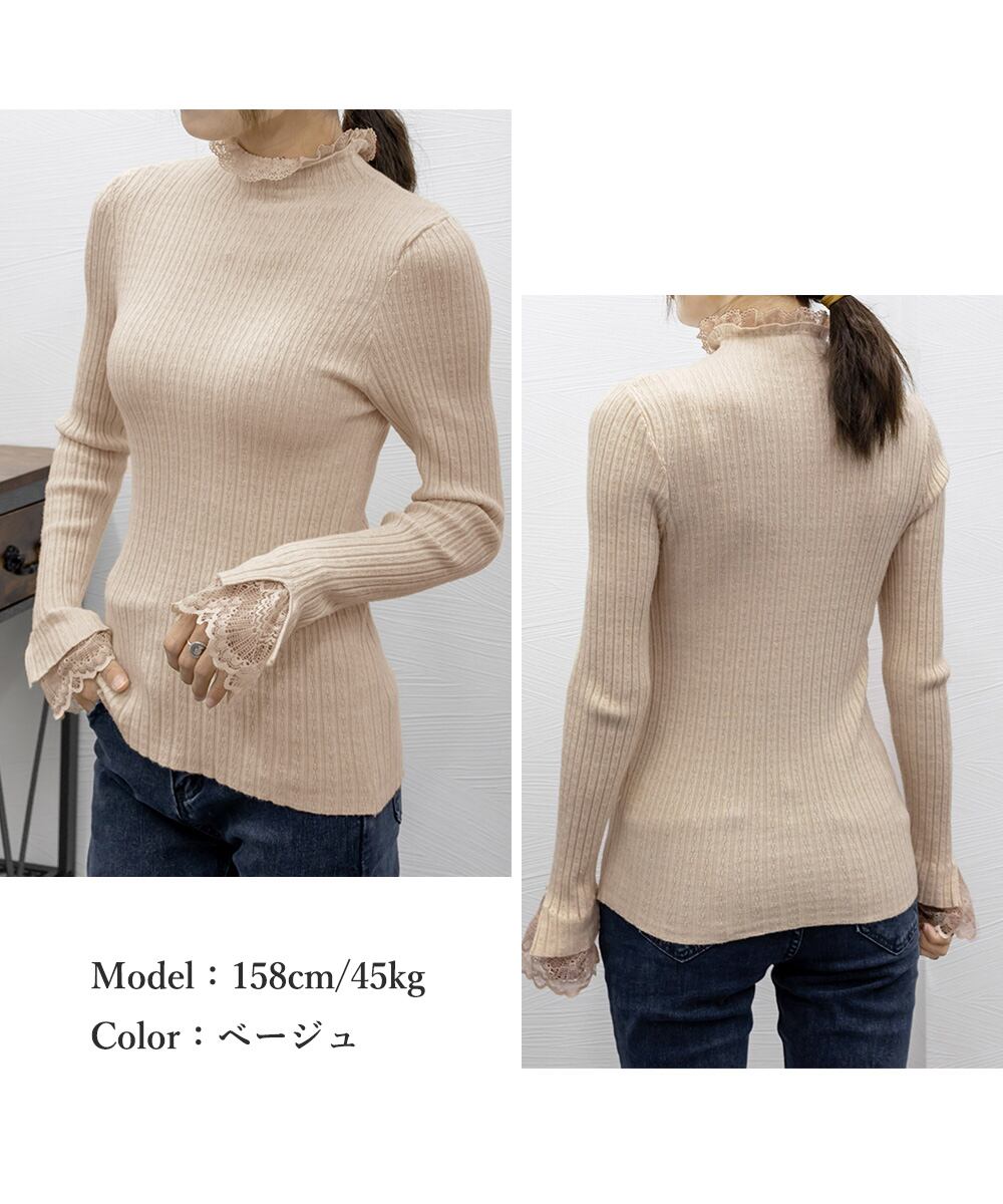スリムフィットリブニット レースニットウェア きれいめニットプルオーバー 着回しニットインナー ハーフネック ニットソー