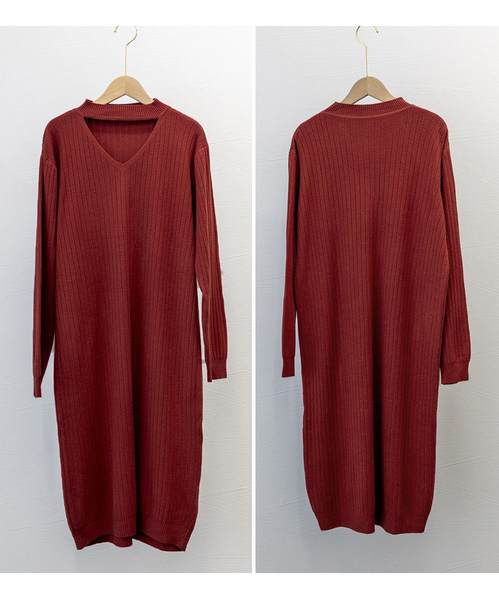 立体感のあるリブ生地を使用、体のラインを拾わず体型カバーするニットワンピース