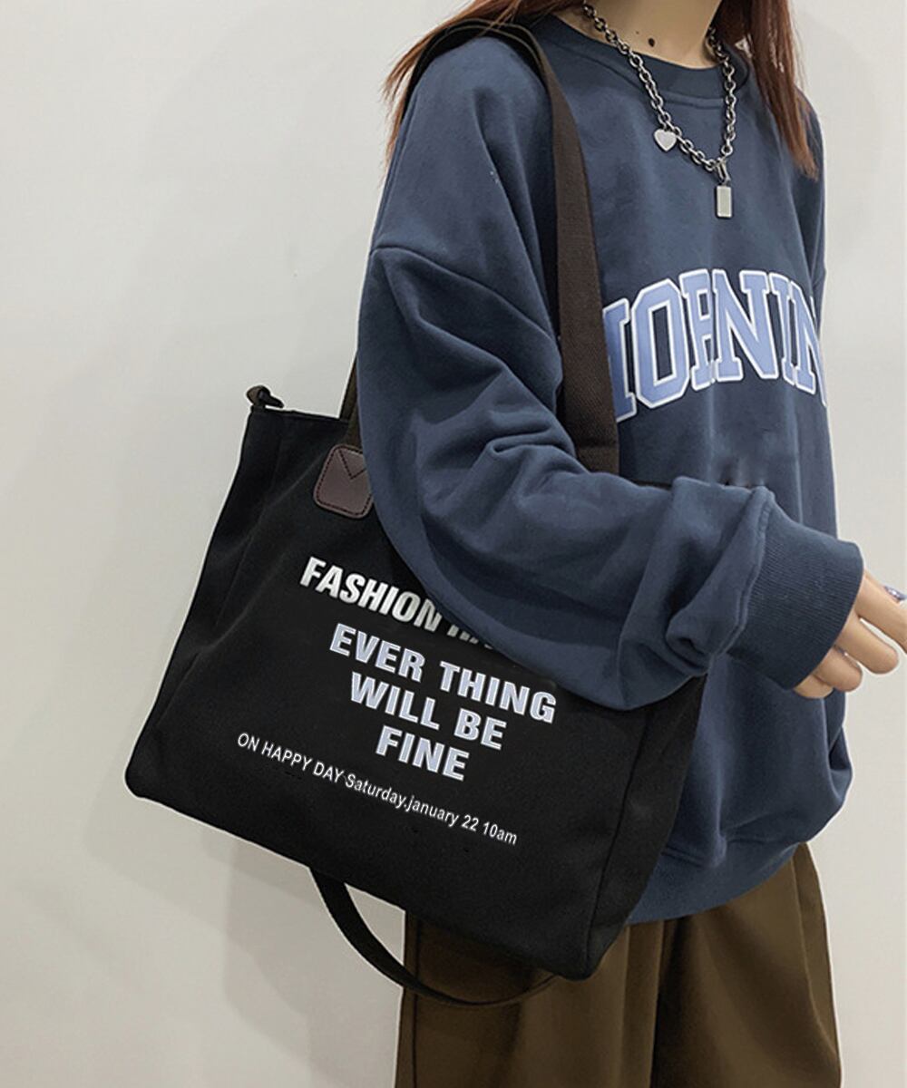 ショルダーバッグ ロゴ入り スクエアバッグ 大容量 カジュアル 2wayバッグ ユニセックス鞄 韓国風 手提げバッグ