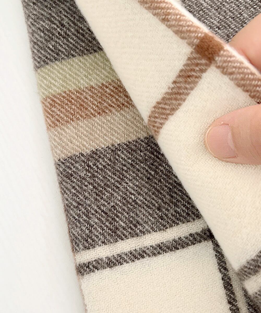 暖かく、おしゃれで、心も温かくなるチェック柄フリンジマフラー。
