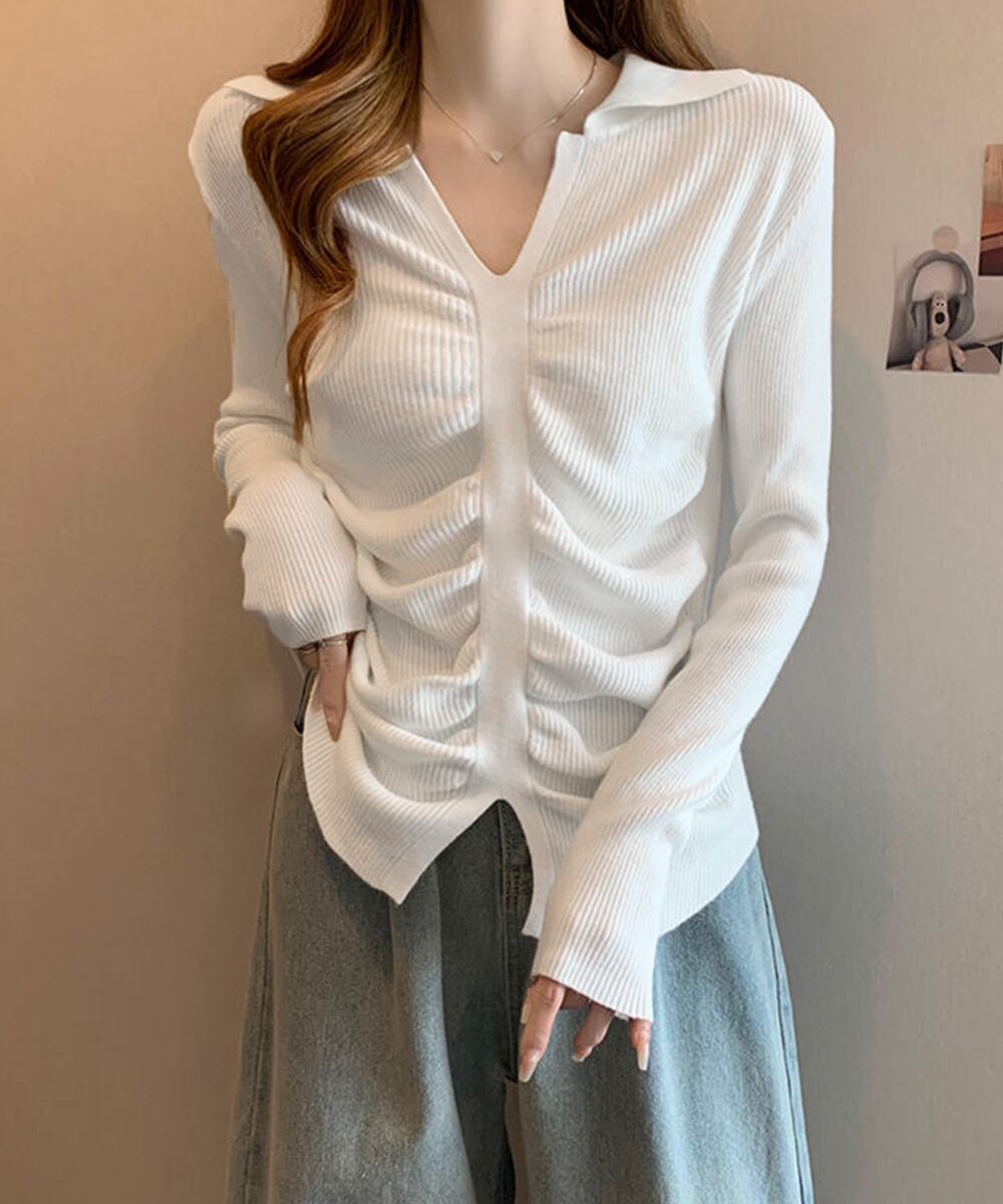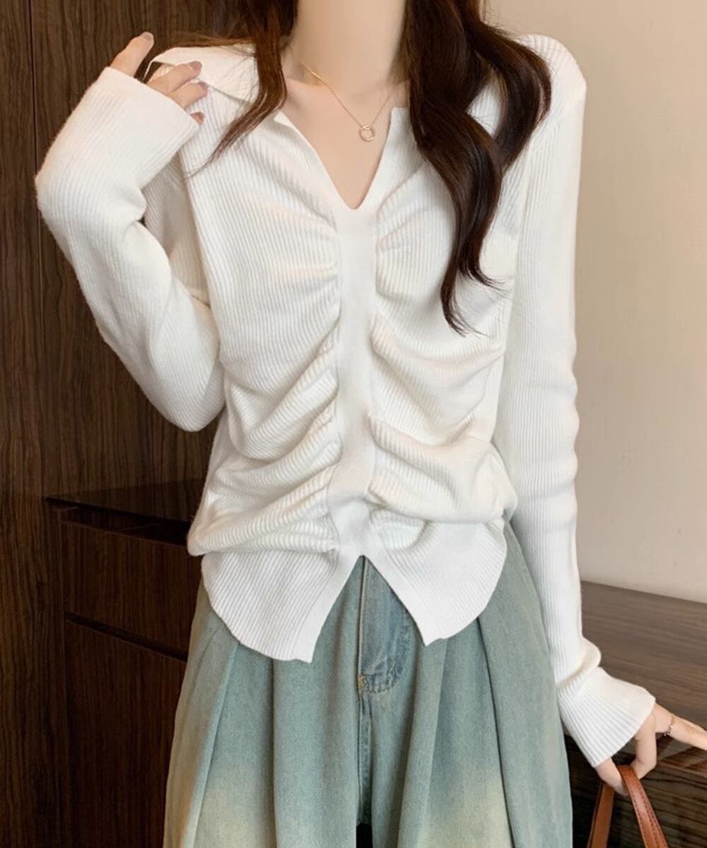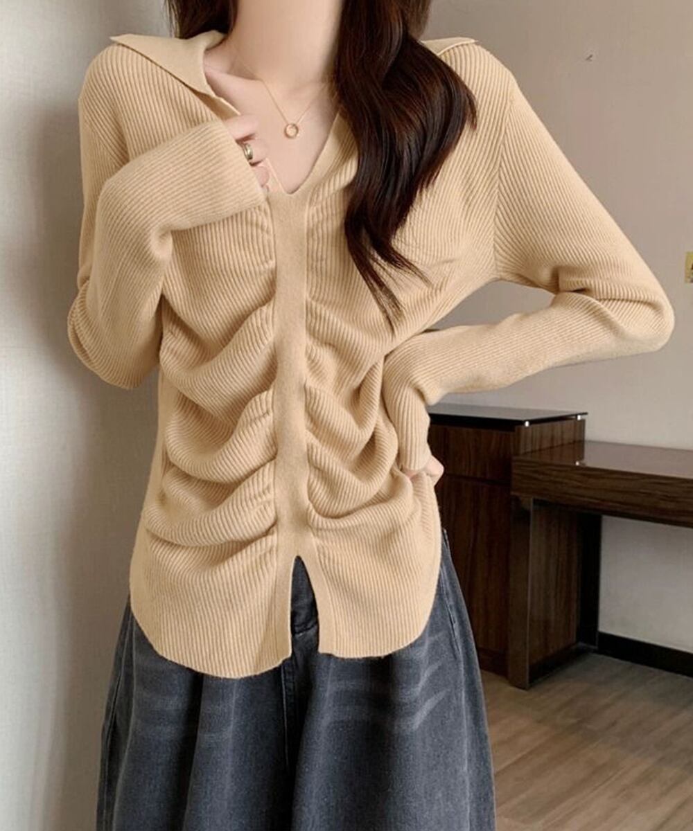 フロントギャザーニットトップス Vネック