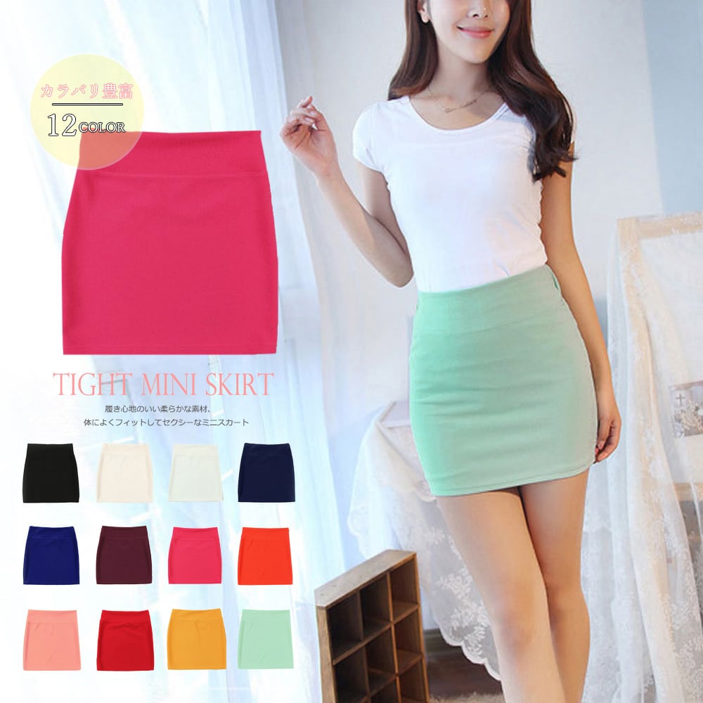 タイトスカート 無地 ミニスカート レディース セクシー ウエストゴム スカート 大人 ショートスカート カラバリ