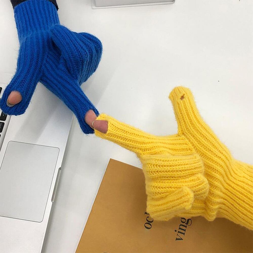 スマホなどの操作をしやすくするため、両手の人差し指部分に小さなホールを施したニット手袋が登場