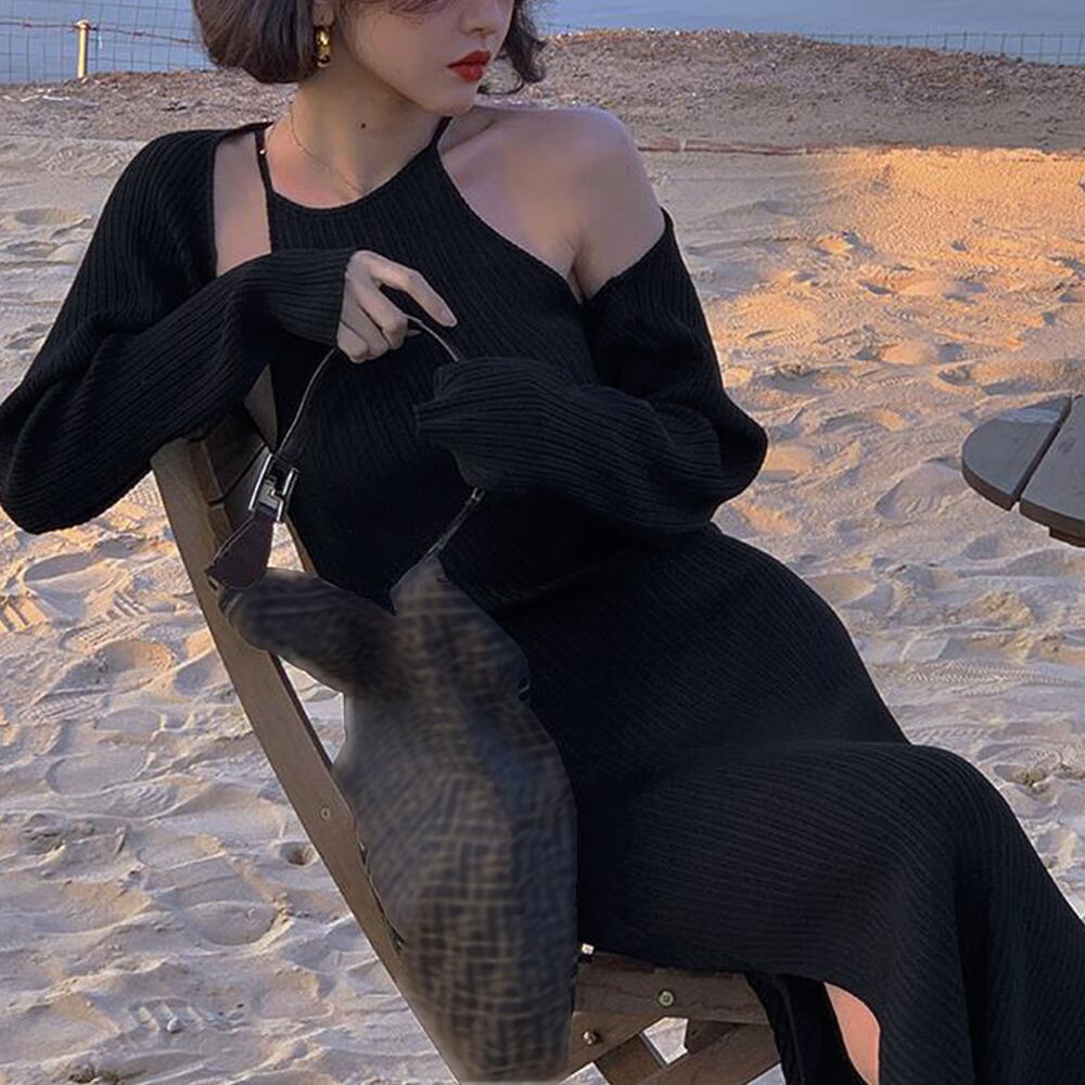 セクシーなキャミソールニットワンピース+ストールボレロの2点セットアップ