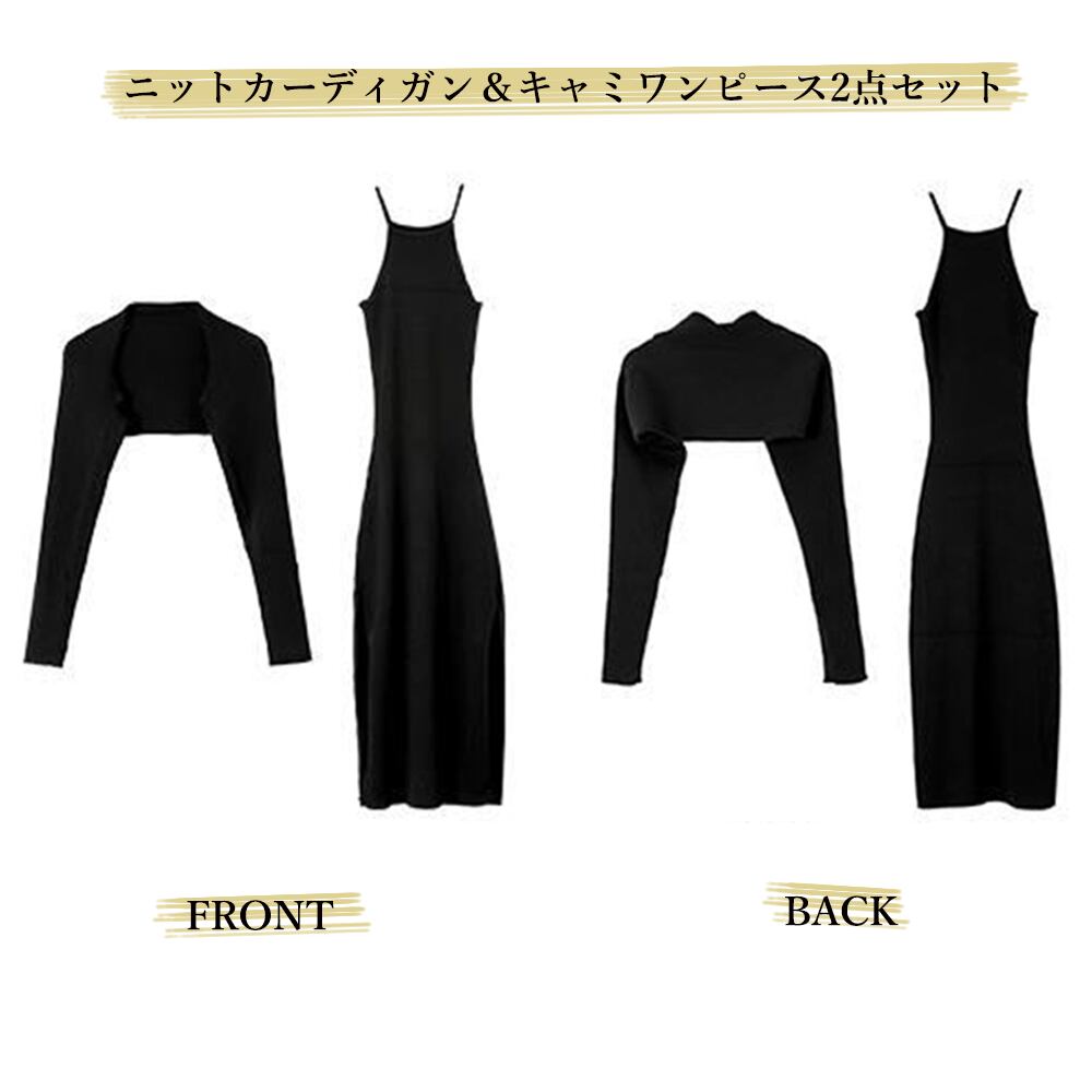 レディース キャミワンピ ショートカーディガン ニット2点セット 韓国 ロングタイトワンピース セクシーきれいめワンピ