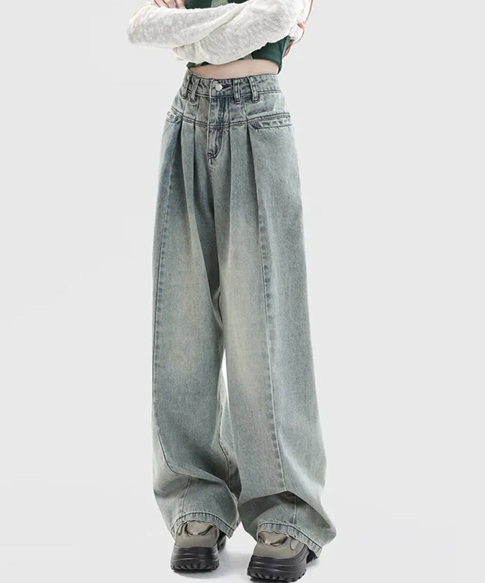 おしゃれなカジュアル感とレトロな雰囲気が融合したこのデニムワイドパンツ