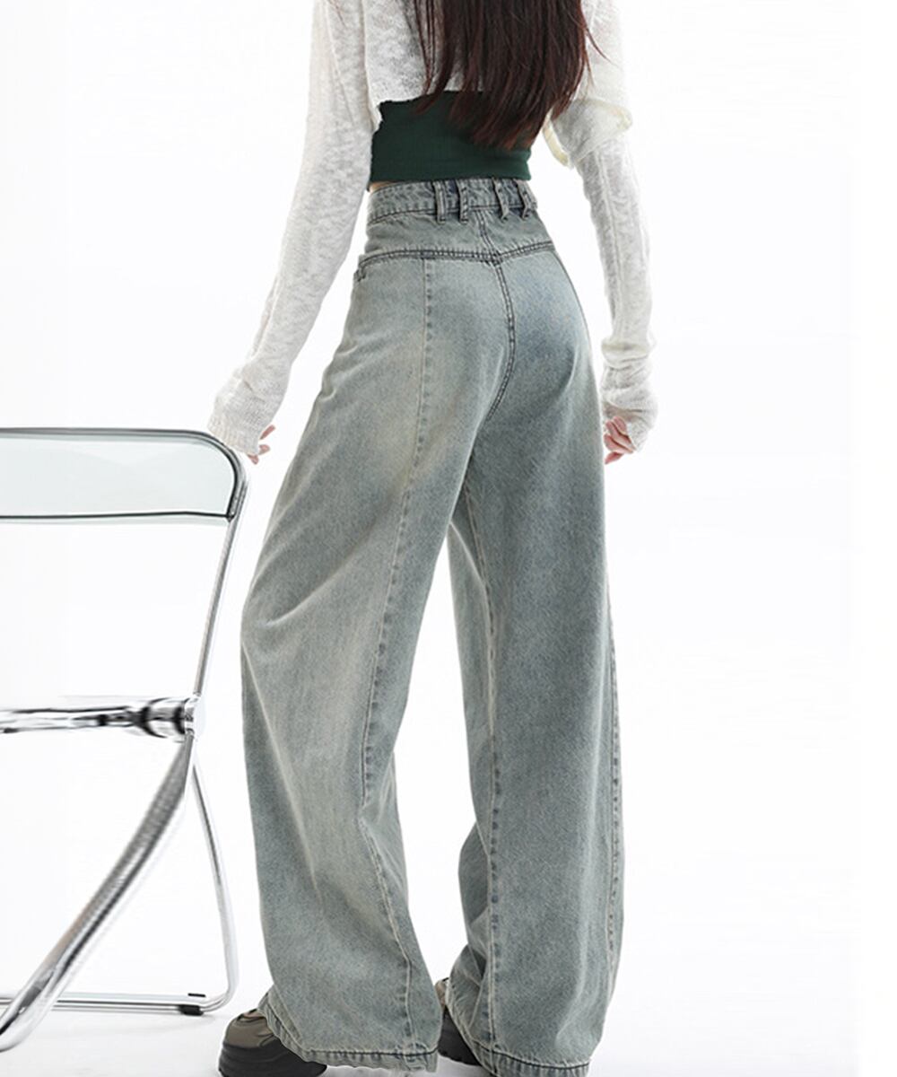 ハイウエストジーンズ 10代20代30代 ゆったりジーパン 体型カバー おしゃれストレートパンツ 美脚脚長 レトロデニム