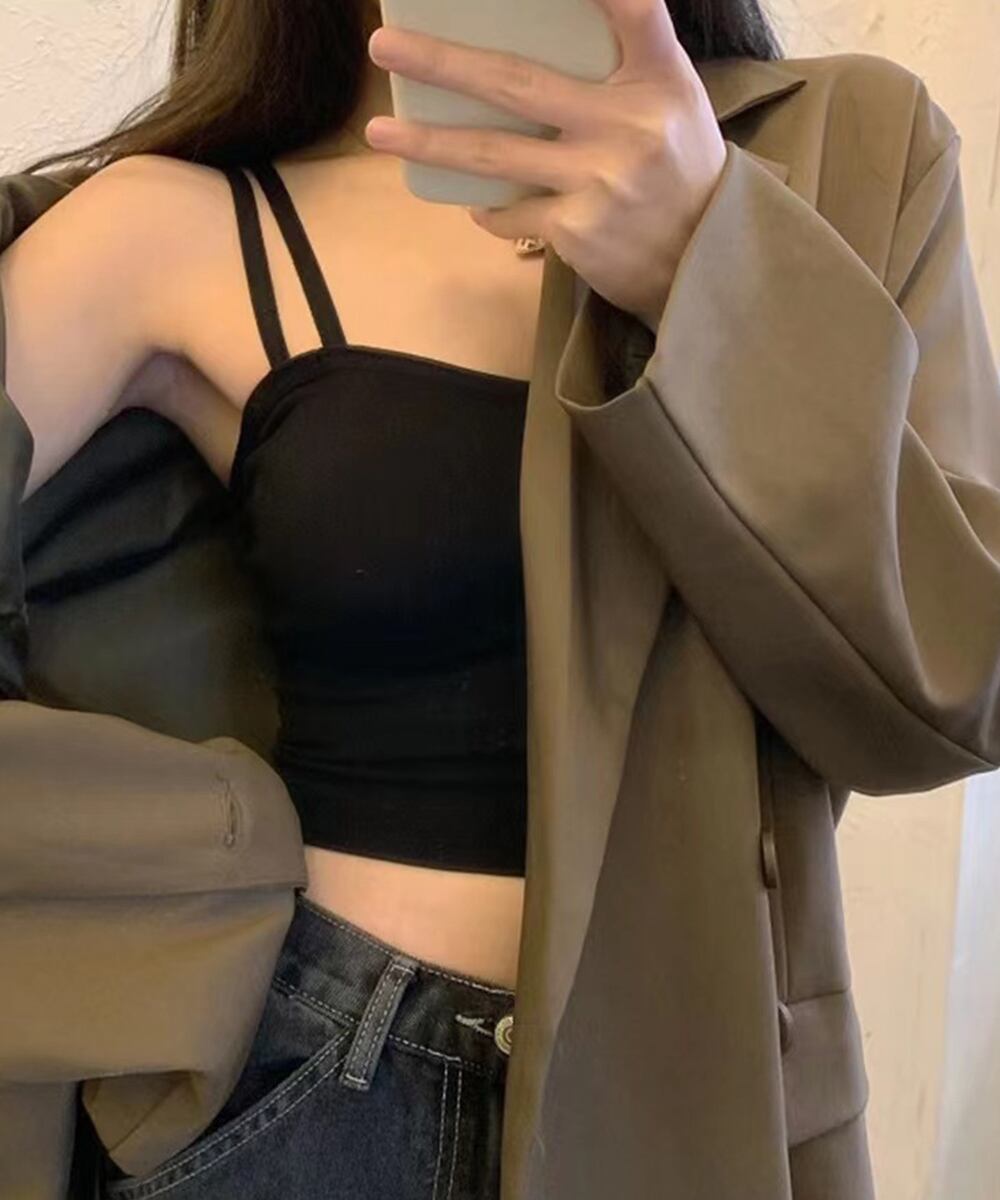 レディース ショート丈 おしゃれ ブラトップ シンプル へそ出し 細見え ノンワイヤー 肌着 着やせ 韓国ファッション