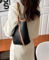 バケツ型が可愛らしく、レザータッチで大人っぽい仕上がりのトートバッグ