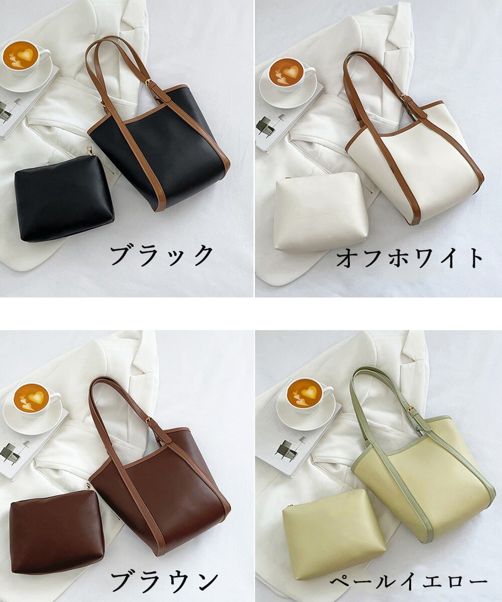 レディース ポーチ付き 手提げバッグ フェイクレザー バッグインバッグ オフィスカジュアル ハンドバッグ 大人可愛い