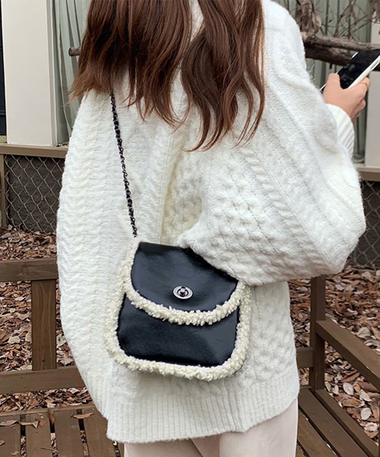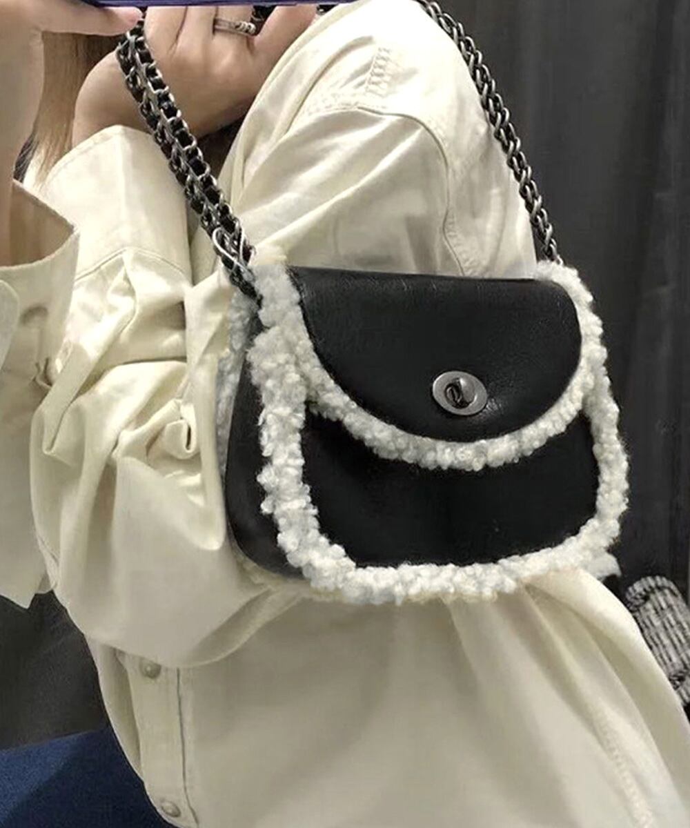 PUレザーショルダーバッグ レディース 斜めがけ 肩掛けバッグ 可愛い2wayバッグ 秋冬 小さめモコモコバッグ 韓国風