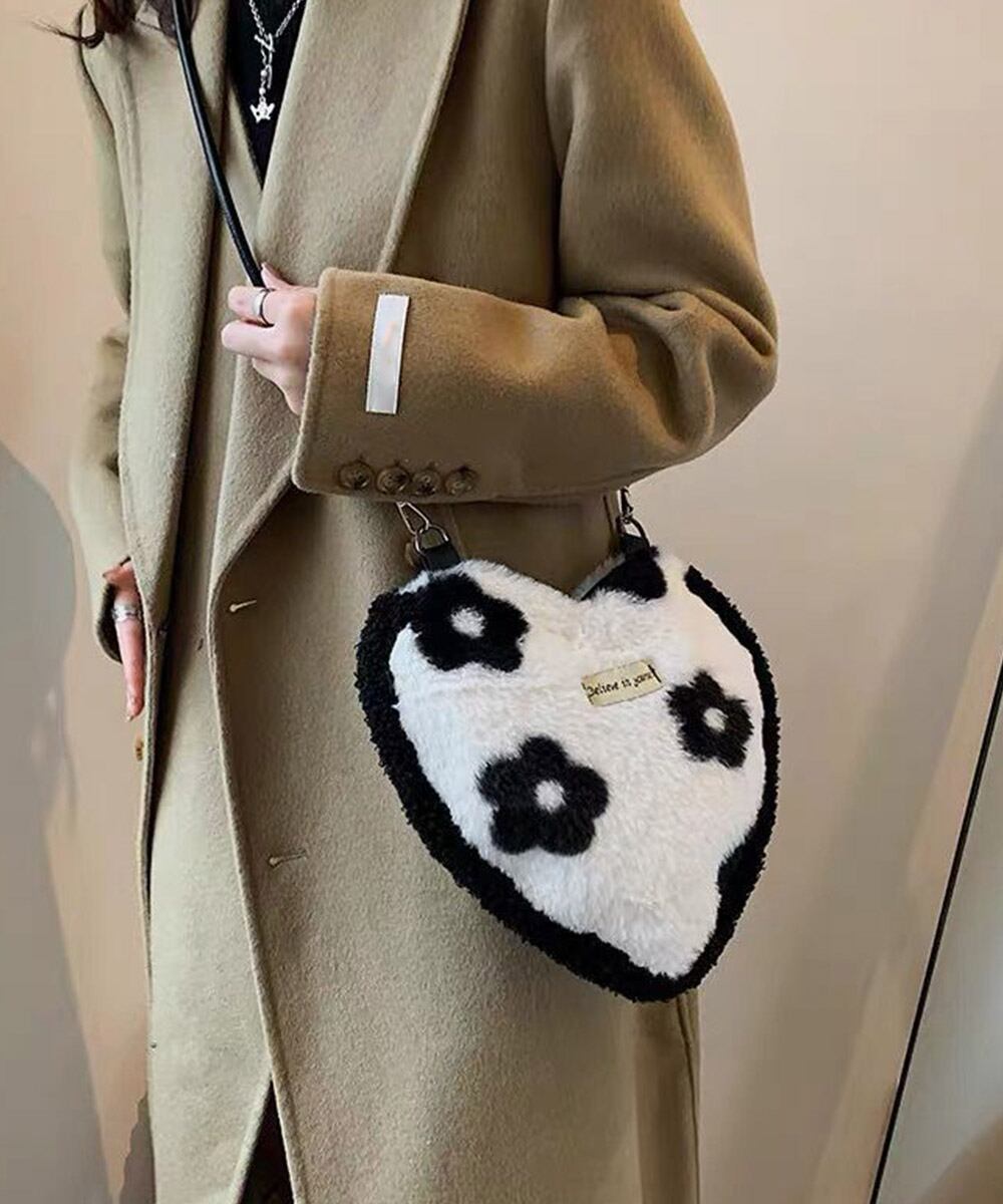 ふわふわで肌触りが良い、ハート型のファーミニバッグが登場