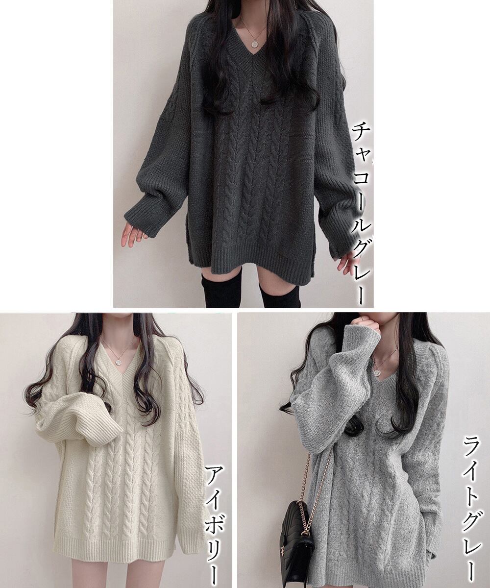 ケーブルニットチュニック ワンピースミニ