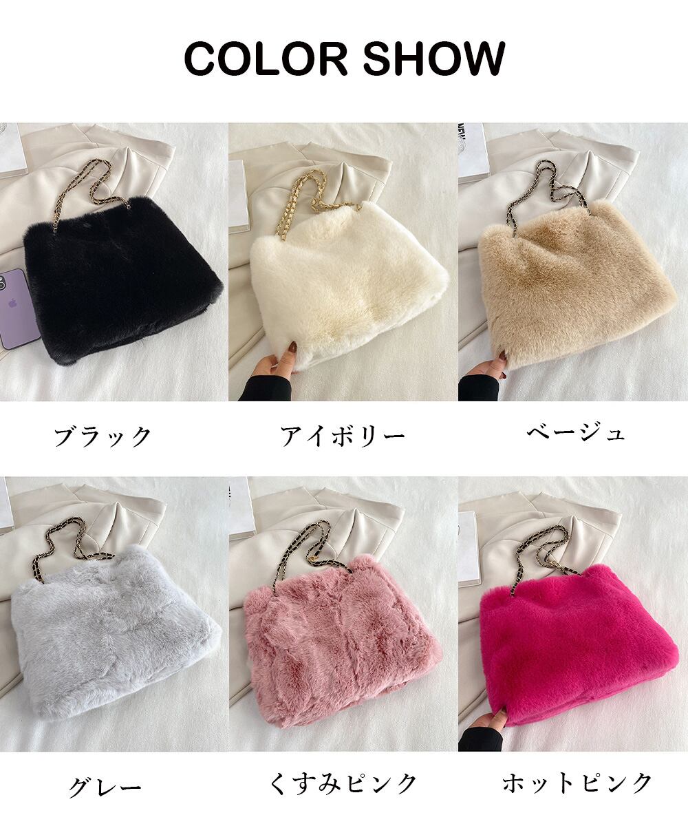 ふんわりとしたフェイクファーで仕上げたもこもこ手触りのチェーンショルダーバッグ